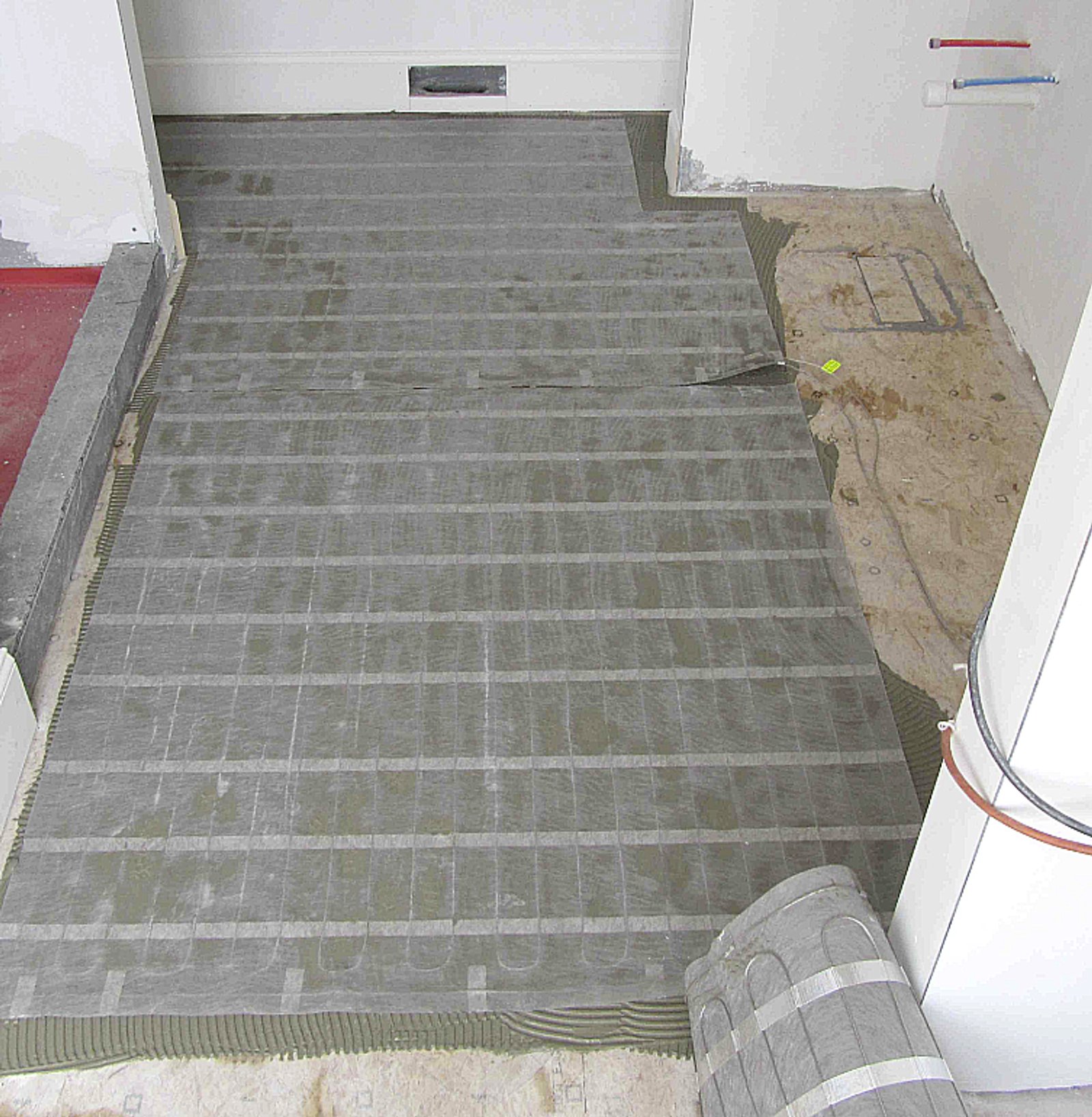 Check the flooring manufacturer's floor heating recommendations. In most cases, the heating system will need to be embedded beneath the flooring. Check for all "flatness" requirements for the flooring you choose. The flattest floors utilize self-leveling cement when installed correctly.