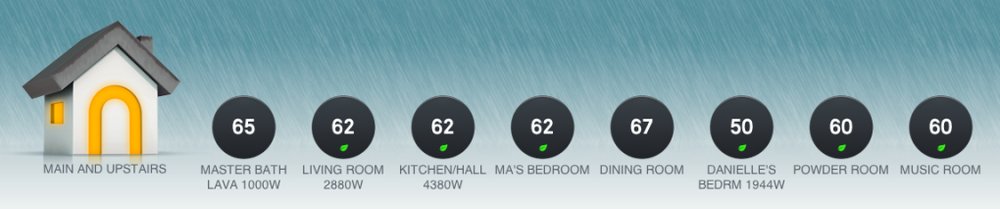 - Living Room (202 sq. ft.) with Nest True Radiant Integration: 137 kWh = $4.67/week