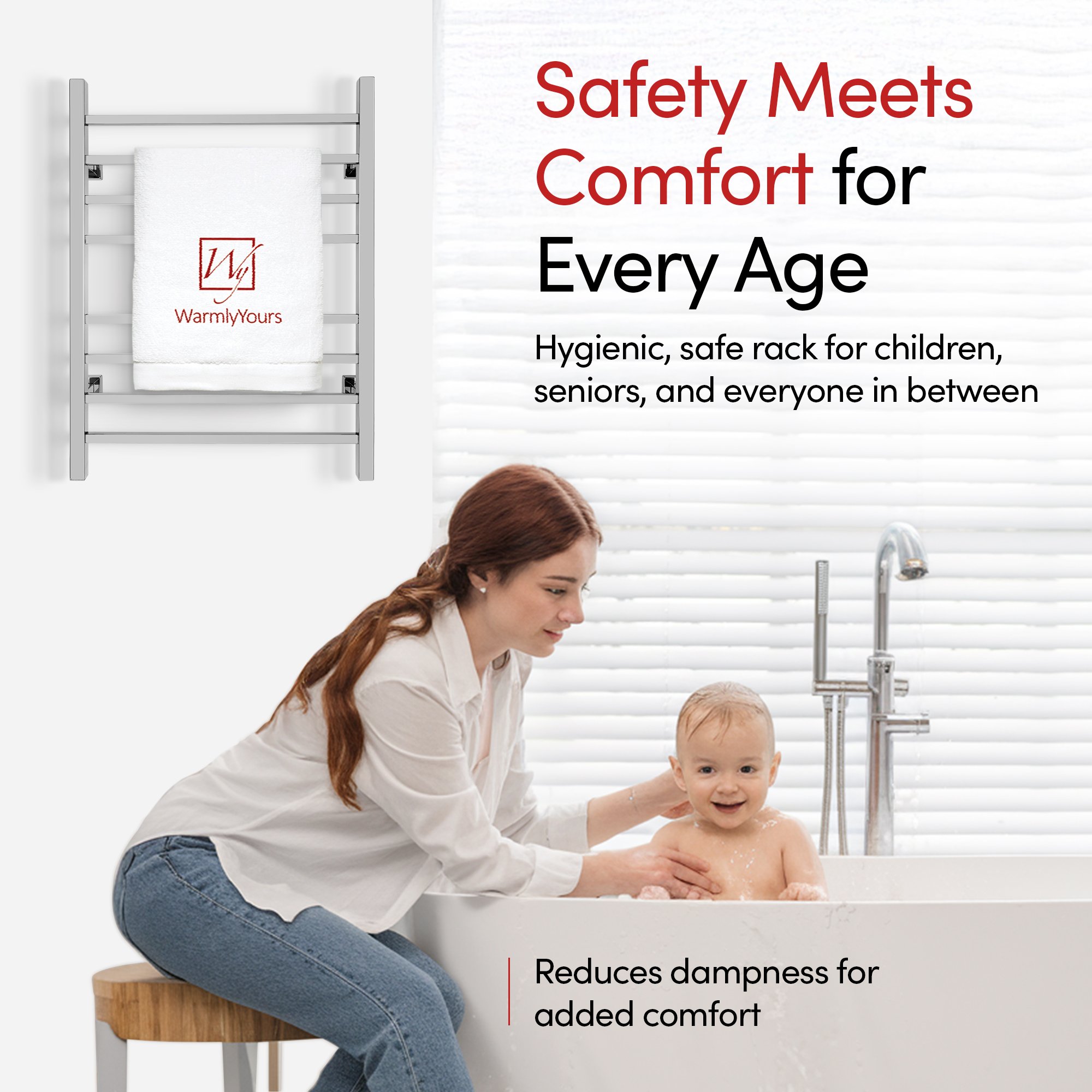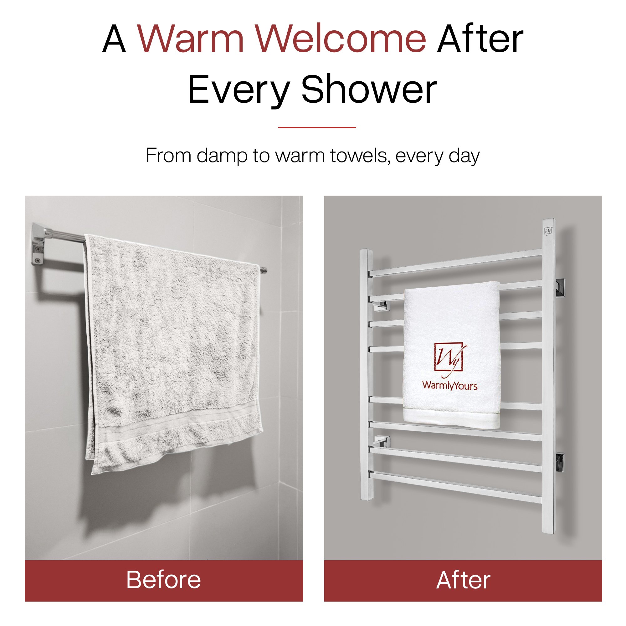 Generous 8-Bar Design: The Sierra towel warmer uses 8 polished stainless steel bars to evenly distribute heat, warming up to 2 large towels or bathrobes