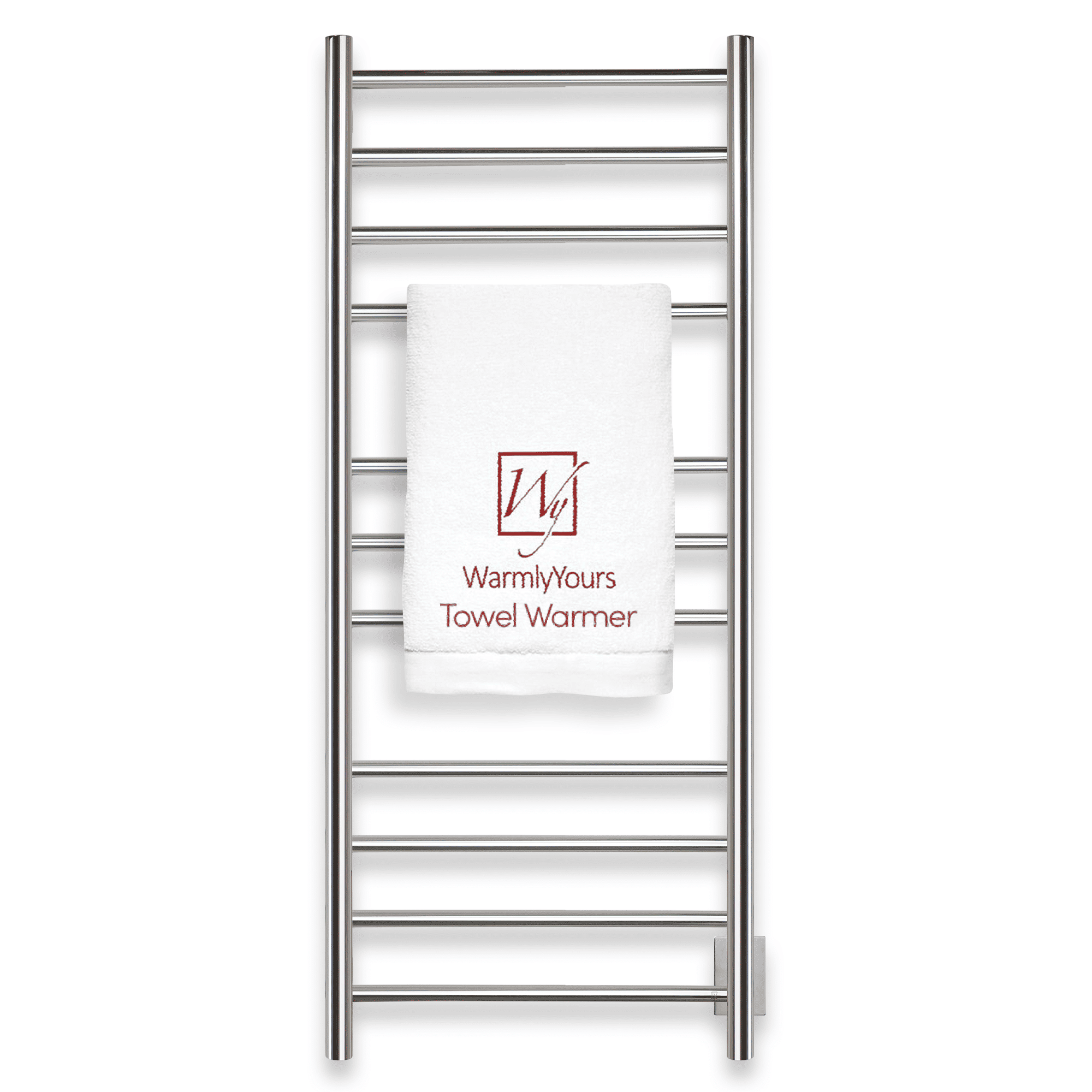 There’s no doubt that a towel warmer delivers comfort and luxury, but the Ontario XL from WarmlyYours is a perfect example of how functional an electric towel warmer can be. The economical Ontario XL’s distinctive size offers two immediate benefits: it can easily accommodate multiple towels and its heat output of 631 BTUs per hour is hard to beat for the price. The heat is delivered through 11 round bars that are spaced in groups of 4, 3, and 4. This orientation makes the Ontario XL well suited for heating and drying towels of different sizes. The polished finish and hardwired connection of this model is both streamlined and aesthetically pleasing. This model comes with built-in TempSmart™ overheat protection to prevent the unit’s surface temperature from exceeding 149°F (65°C).