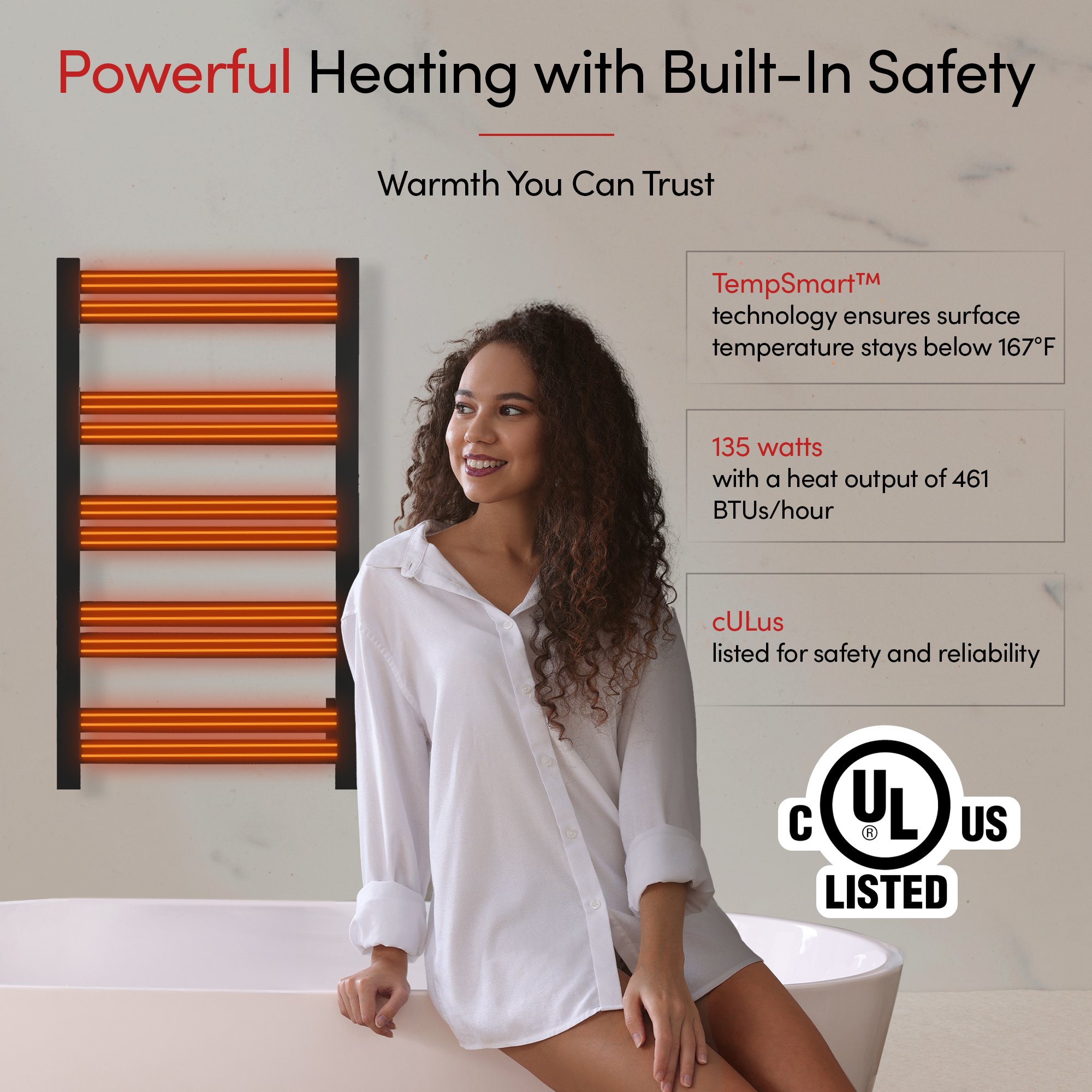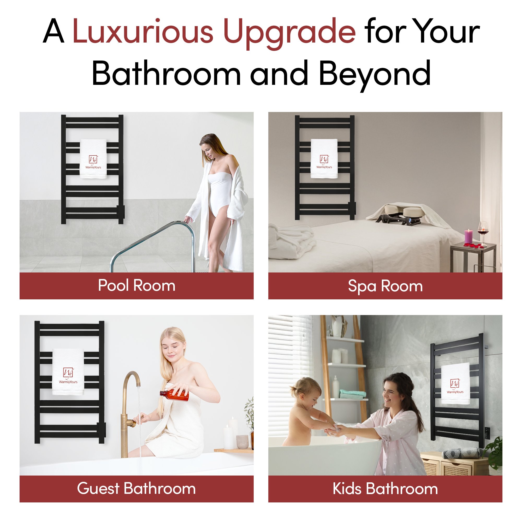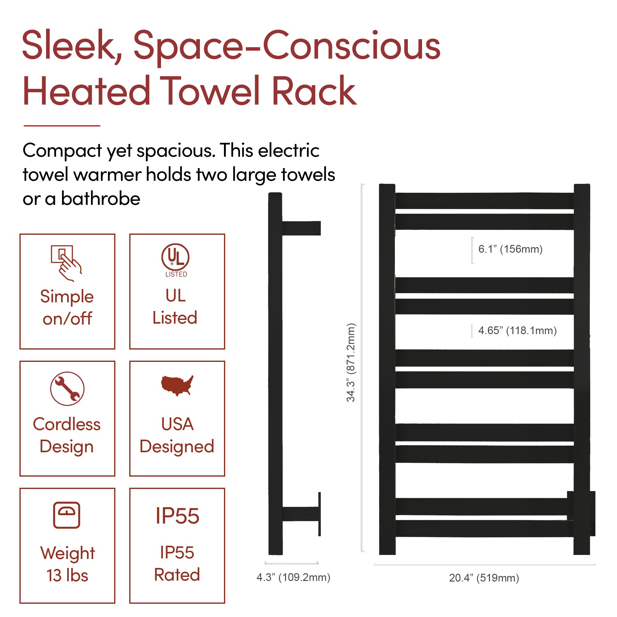 Generous 10-Bar Design: The Grande 10 towel warmer uses 10 matte black stainless steel bars to evenly distribute heat, warming up to 2 large towels or bathrobes