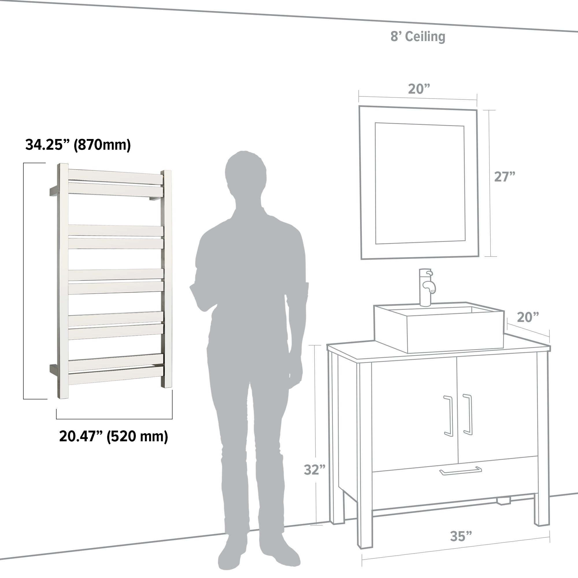 - Dimensions: 41” (1,040 mm) H x 20.5” (520 mm) W x 4.3” (110 mm) D