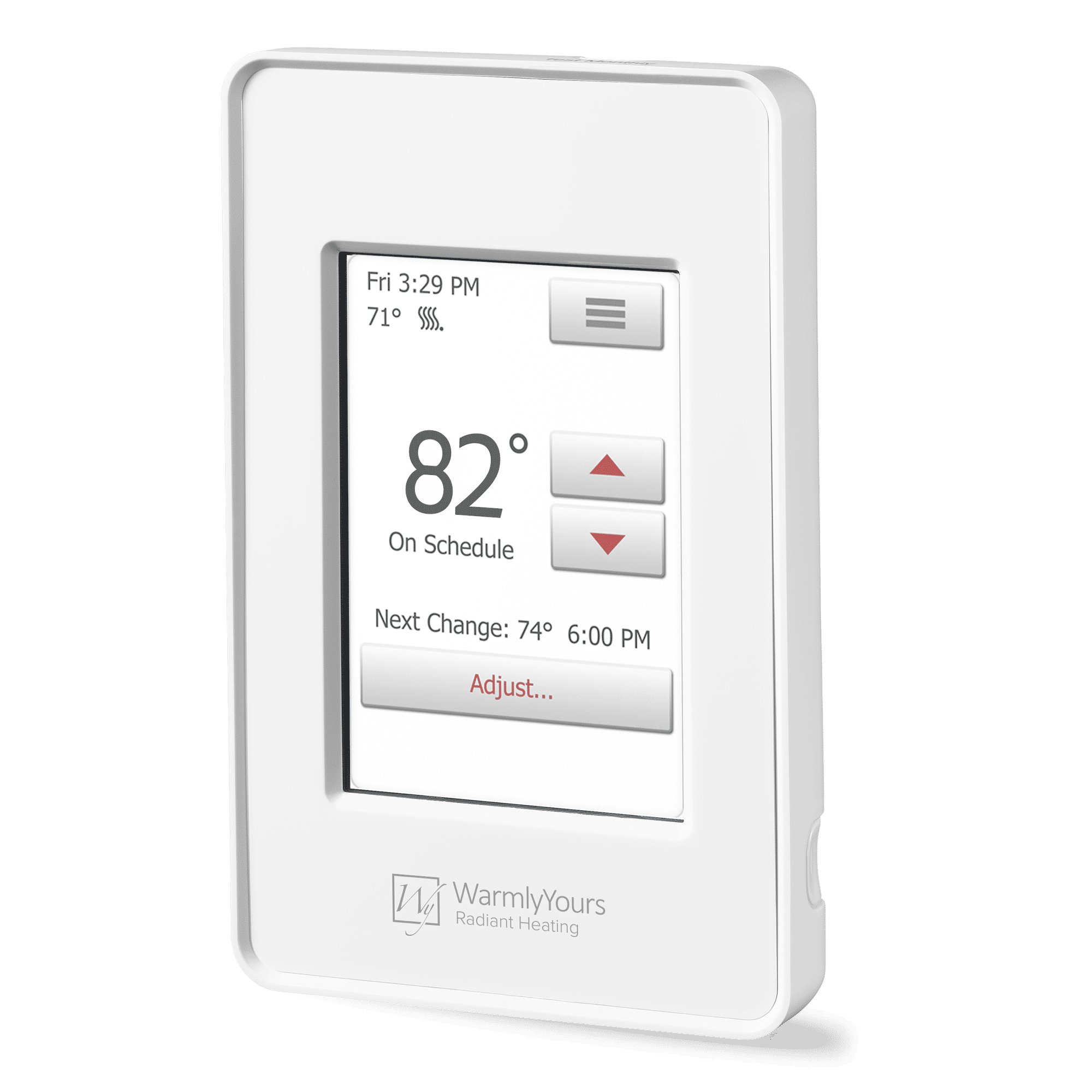 Finally, a radiant heating thermostat that looks as good as floor heating feels. This version comes with a white faceplate that allows the unit to blend seamlessly with a large variety of room designs. The programmable nSpire Touch features a 3.5” full color touchscreen and a modern design that instantly augments any room’s style.