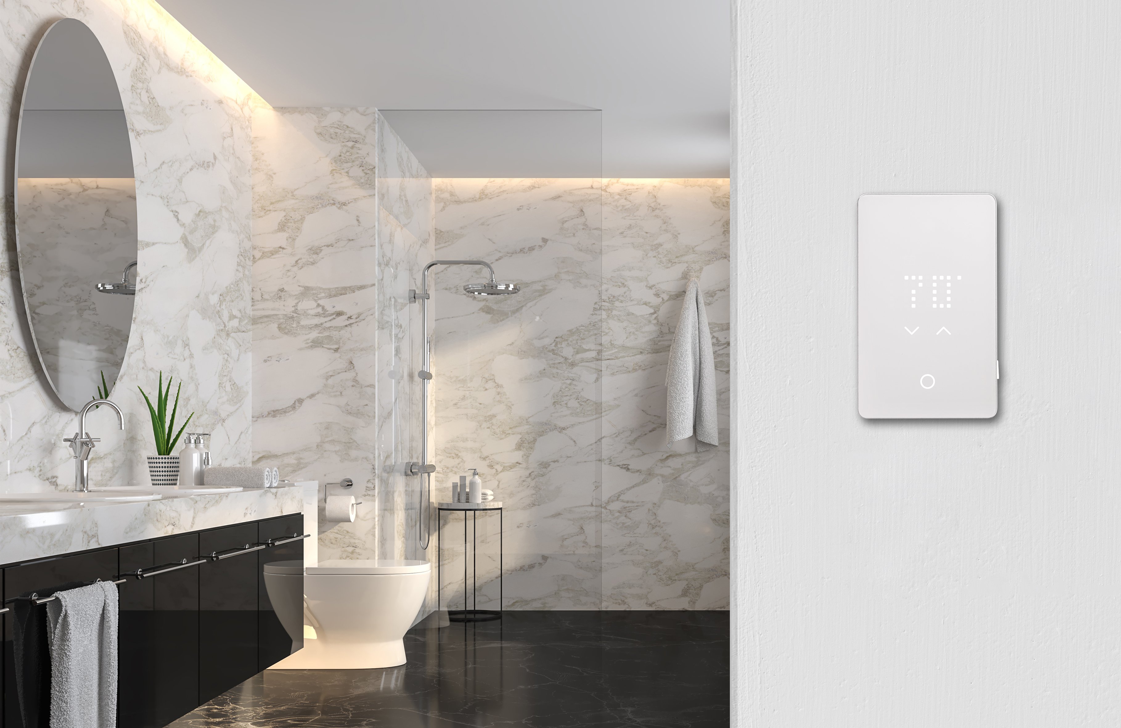 The dual-voltage (120V/240V) nTrust 2.0 thermostat comes with integrated self-testing GFCI which ensures safety.