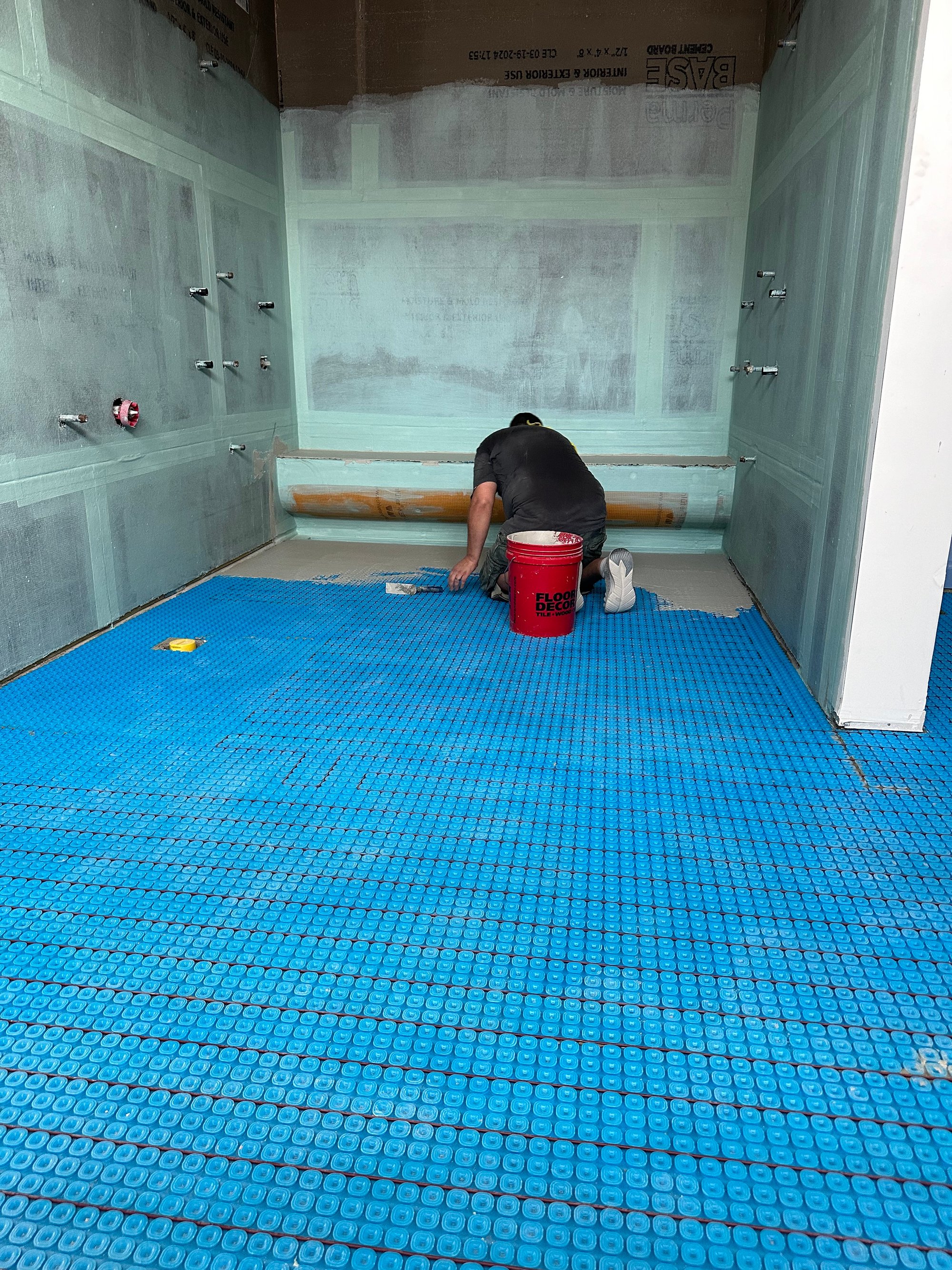 Because the project included a walk-in shower, Jeramie utilized the flexibility of the TempZone™ Cable system. Spaced at 3.75", the cable was custom-woven throughout the room and directly into the shower pan, ensuring 100% coverage. In the humid Louisiana climate, this system does more than just heat; it actively dries the floor and shower faster, reducing moisture buildup and the mildew risks that often plague Southern bathrooms. With the nJoy WiFi Thermostat, the homeowner now enjoys a bathroom that is perfectly warm the moment they wake up, managed effortlessly from their phone.