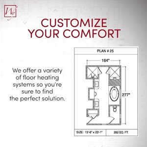 WarmlyYours offers a heating system for all of the most common flooring surfaces, including tile, stone, and marble. Each system type has unique advantages and best applications. Below you will find several different floor plans that are based on this example bathroom. Each breakdown is based on a different heating element and each breakdown will provide product information and costs. If you have any questions about which system type would be best for your project, you can contact us directly.