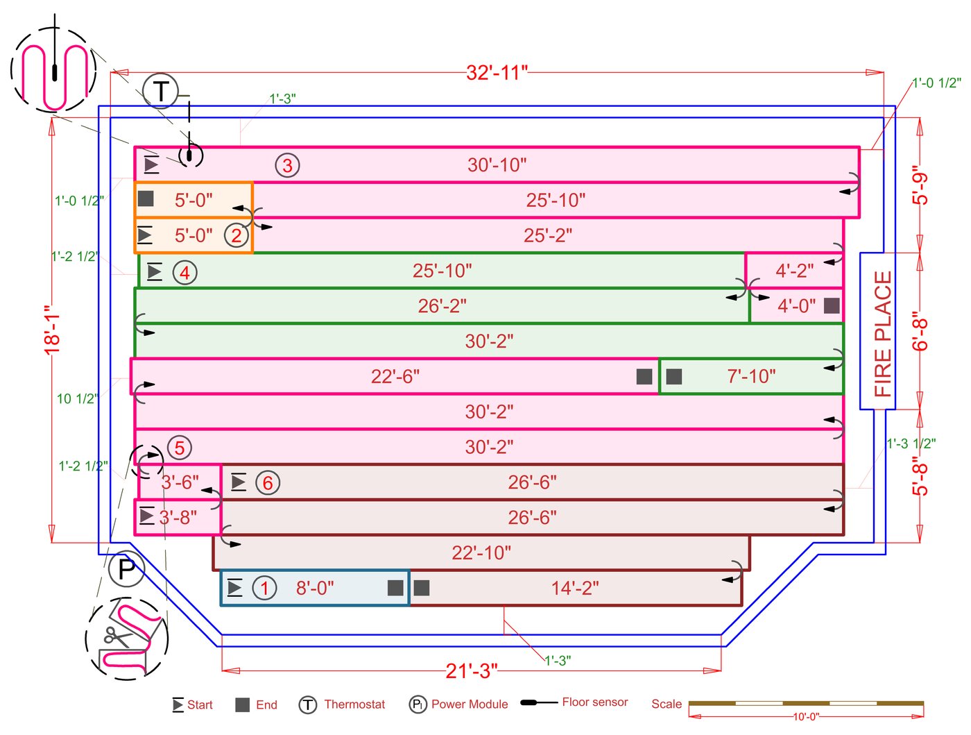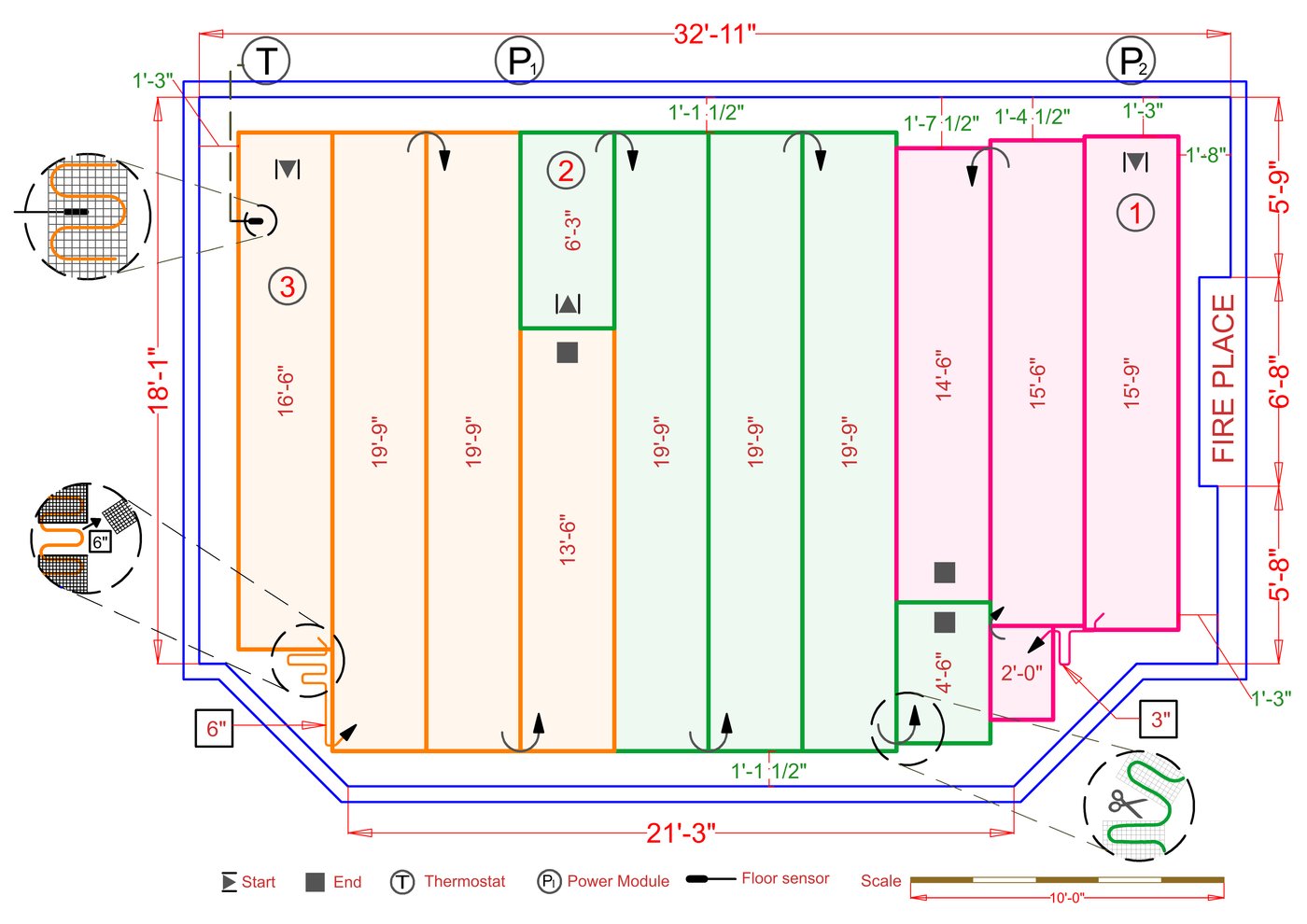 WarmlyYours offers a heating system for all of the most common flooring surfaces, including tile, stone, and marble. Each system type has unique advantages and best applications. Below you will find several different floor plans that are based on this example sunroom. Each breakdown is based on a different heating element and each breakdown will provide product information and costs. If you have any questions about which system type would be best for your project, you can contact us directly.