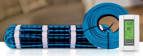 Both the mats and cables can be controlled by using a standard room thermostat with a floor sensor. Whatever format you choose, it's highly recommended that a concrete contractor or electrician install the floor-heating system within the freshly poured concrete.