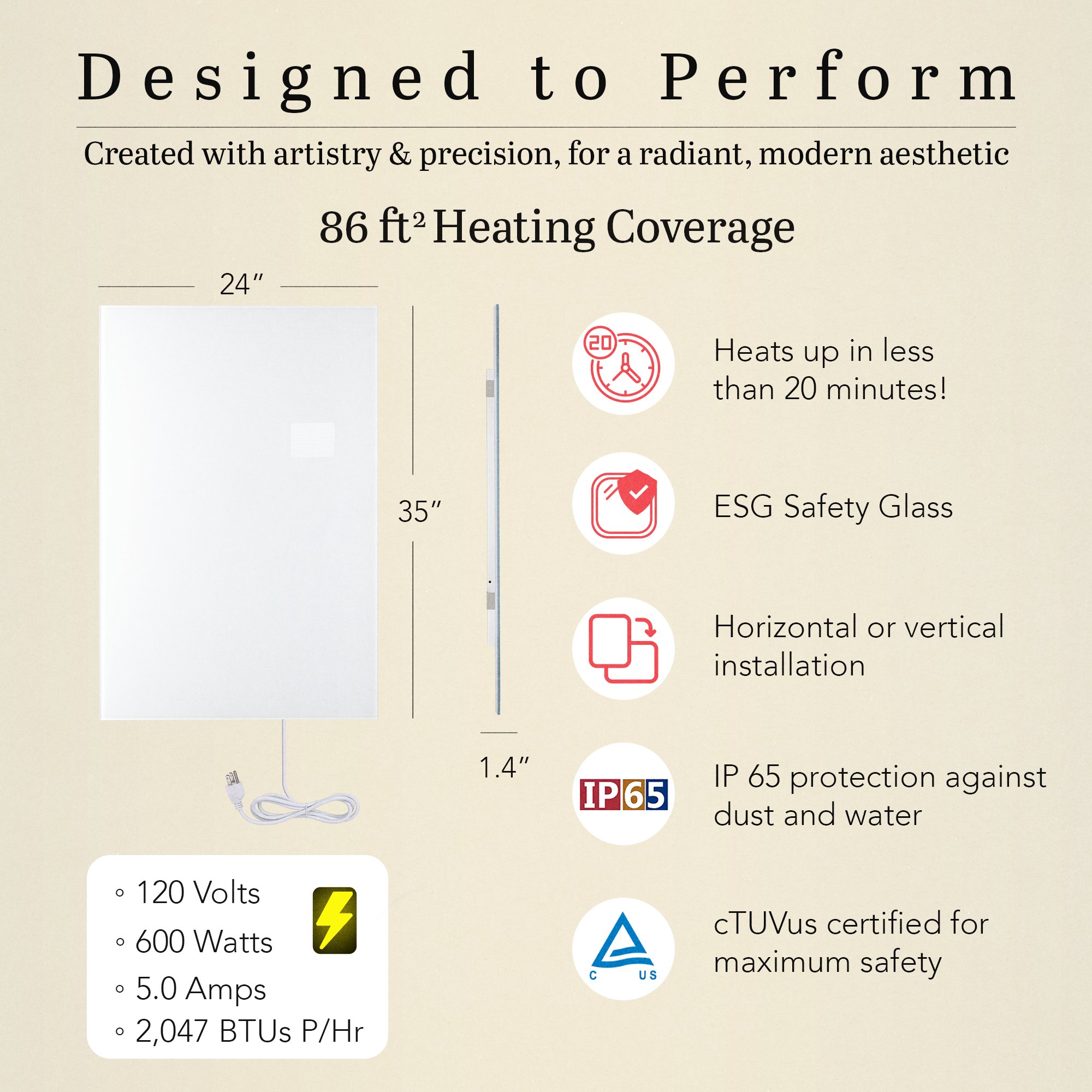 Ember Glass Radiant Panel Heater - White - 600W - 35ʺ x 24ʺ - Dual Connection
