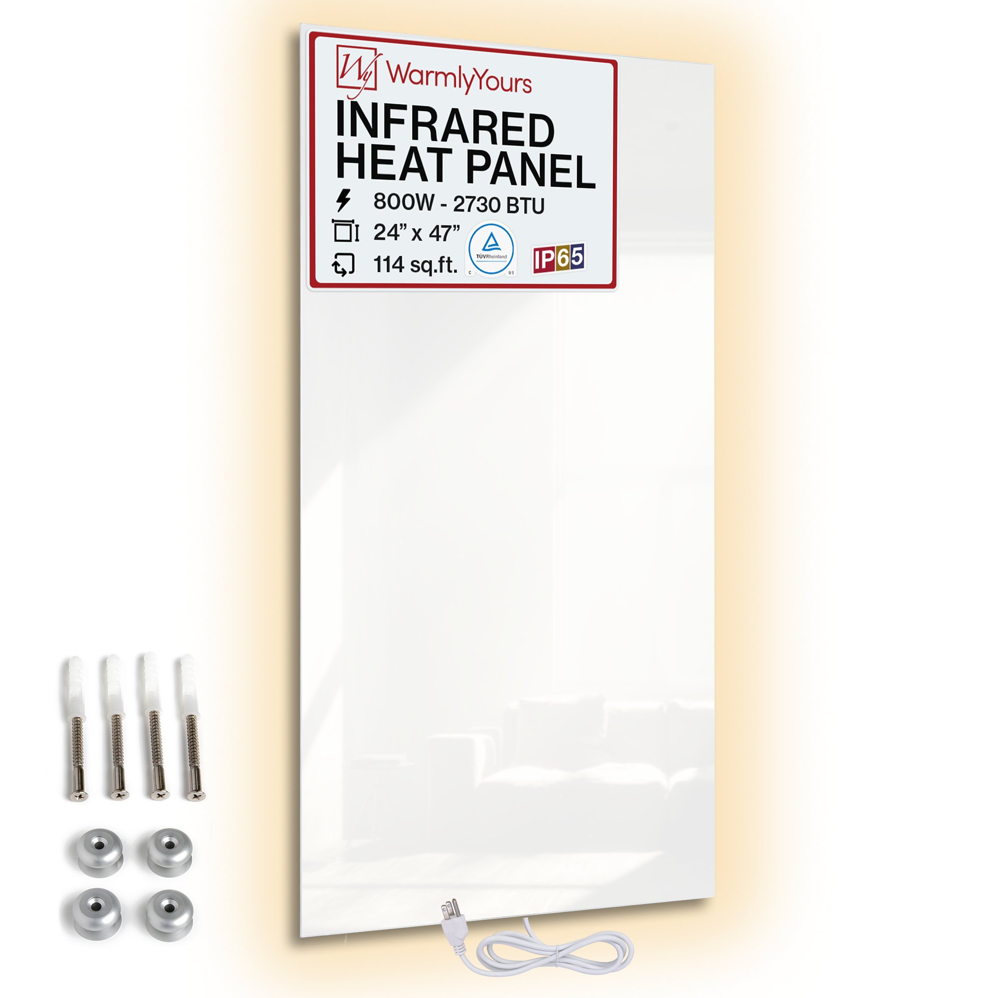 - Wall Mounted: This 47” x 24” radiant panel can be installed vertically or horizontally on your wall