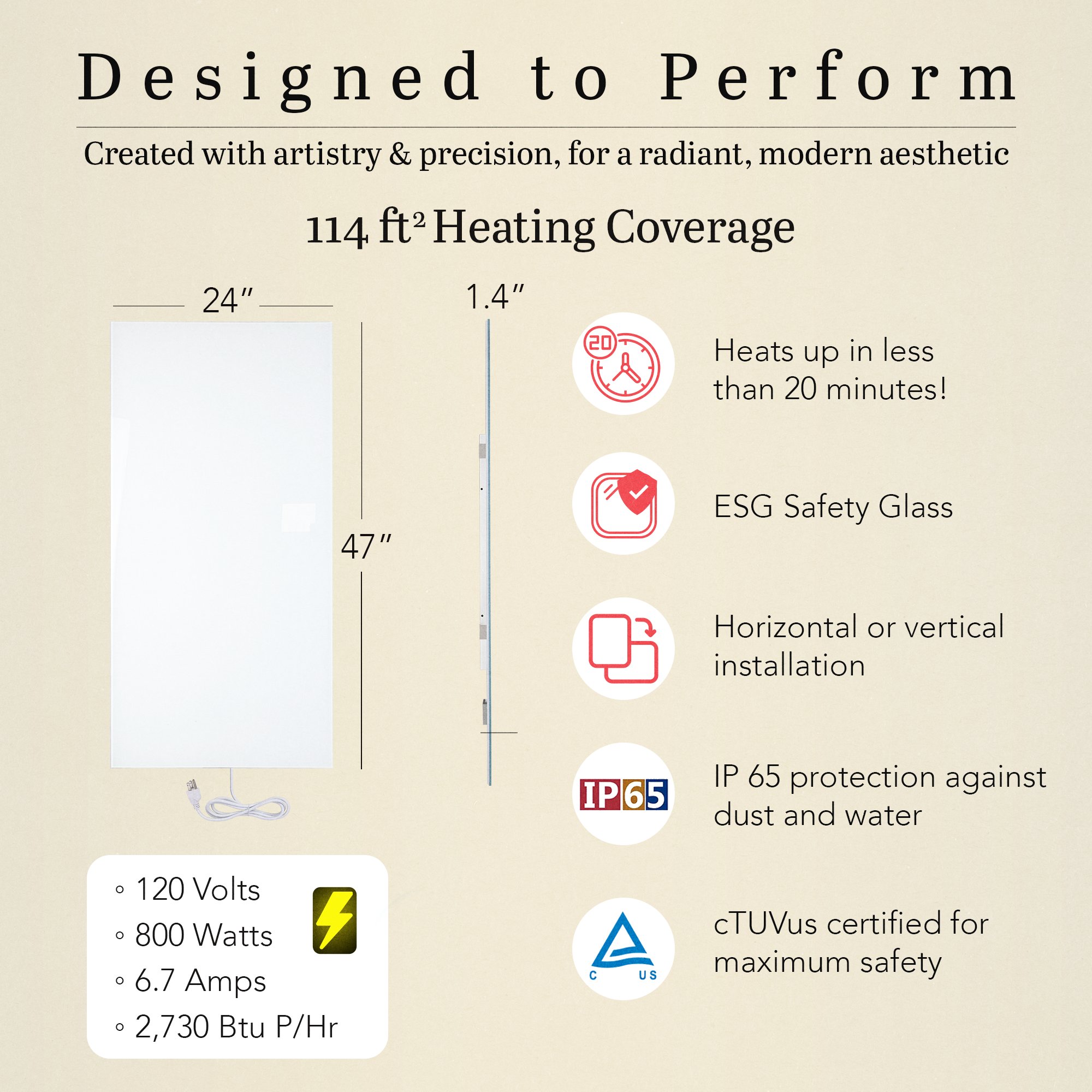 | Heating Coverage | 114 ft² |