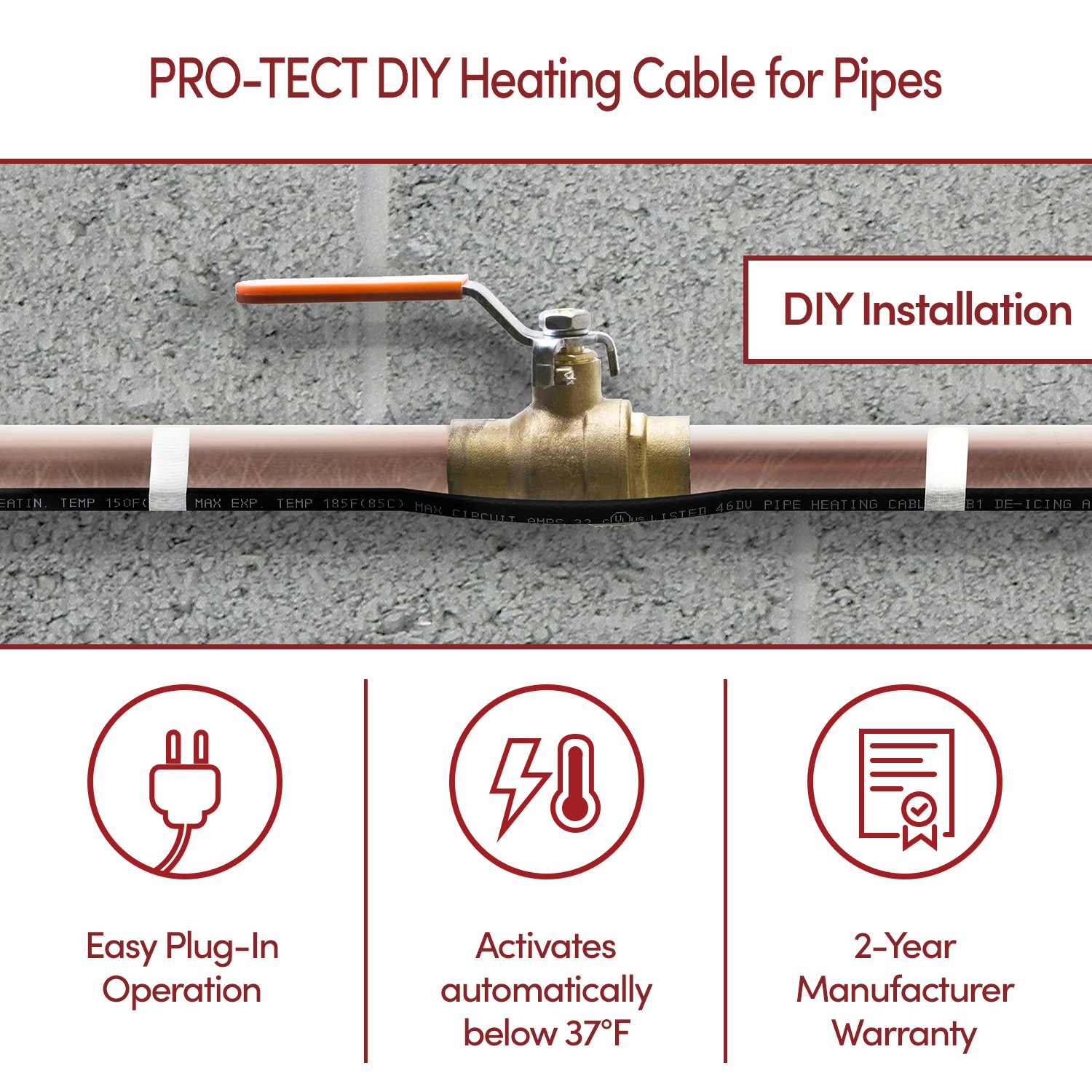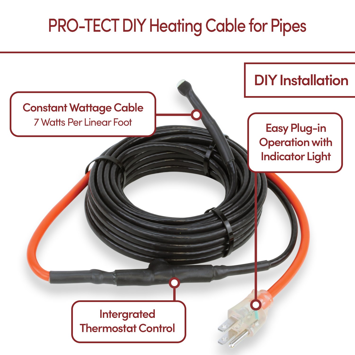 PRO-Tect DIY Heating Cable for Pipes, Constant Wattage (7W/ft), 120V Description