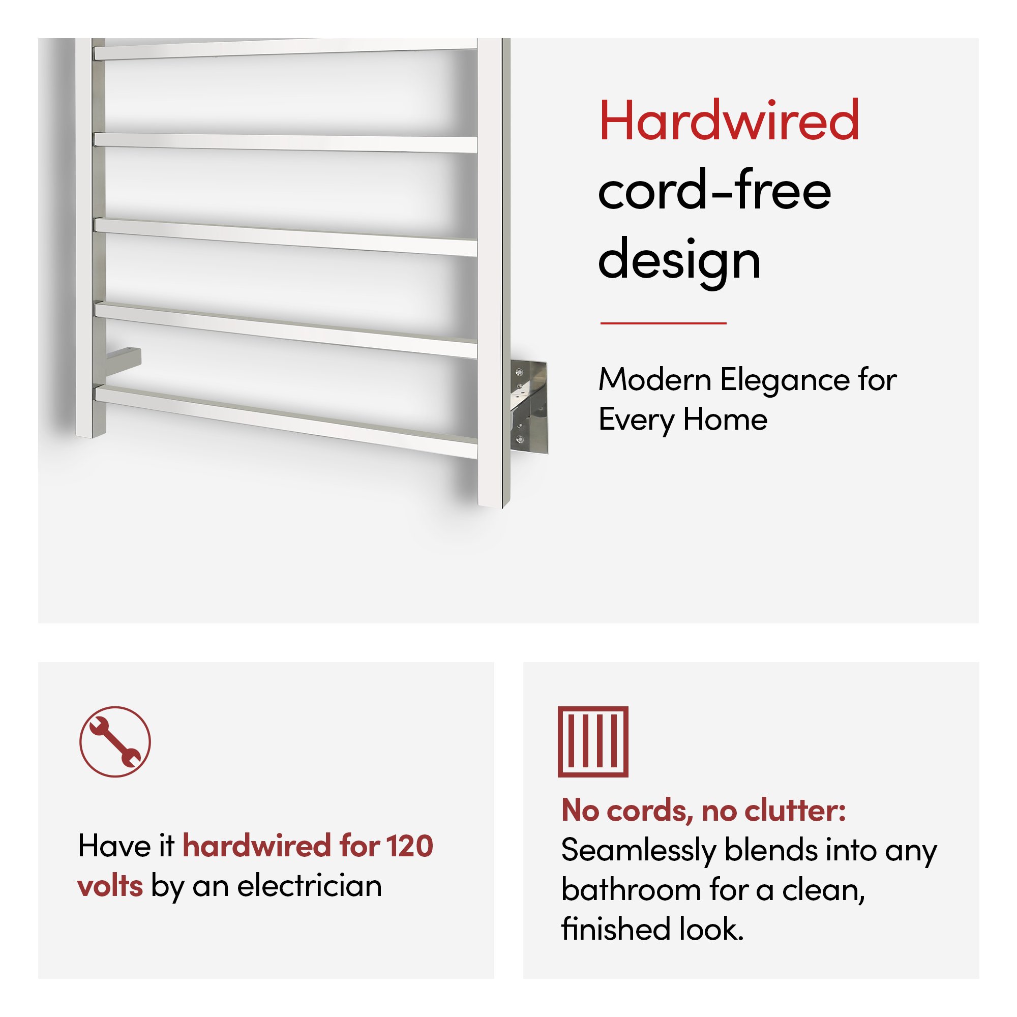 | Package Contents | Towel Warmer, installation manual and hardware kit |