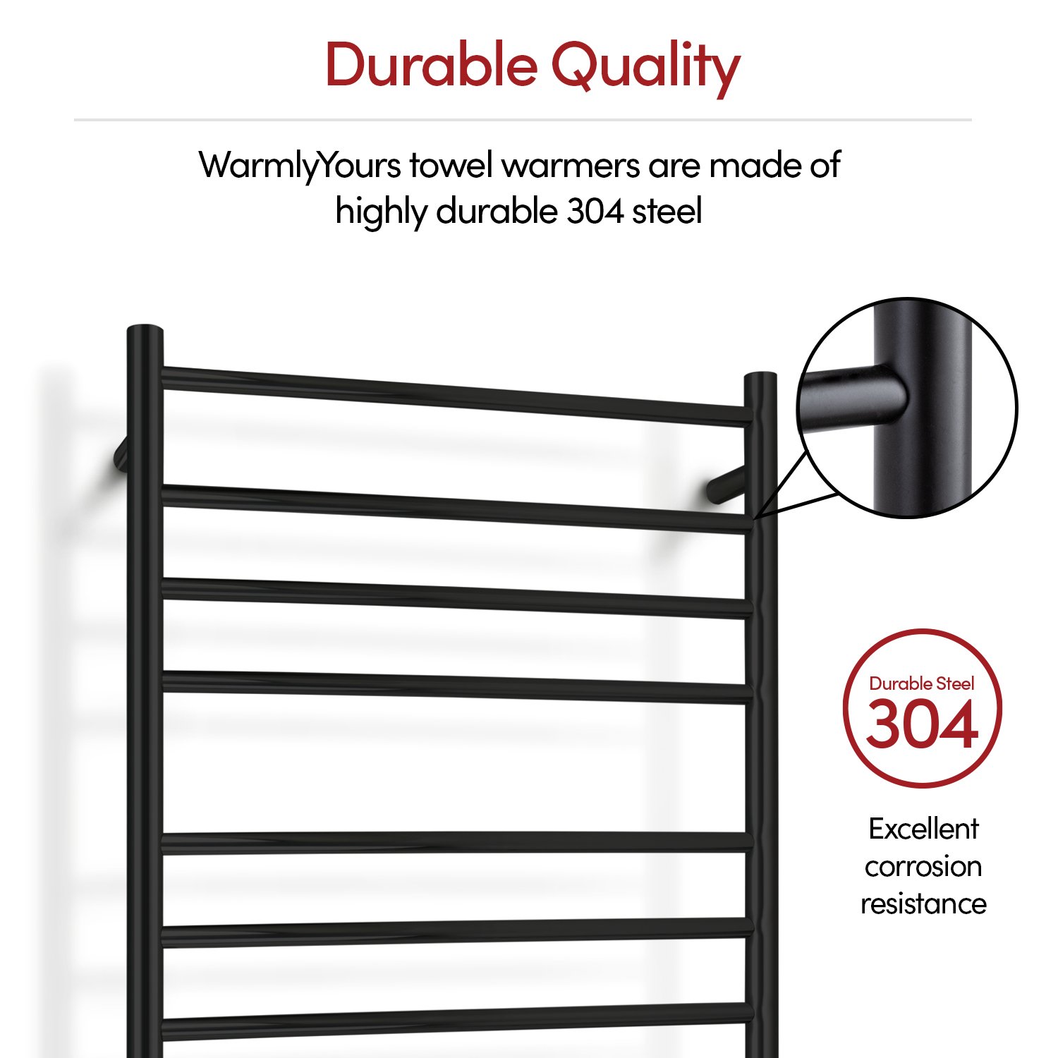 Generous 11-Bar Design: The Malta towel warmer uses 11 matte black stainless steel bars to evenly distribute heat, warming up to 2 large towels or bathrobes