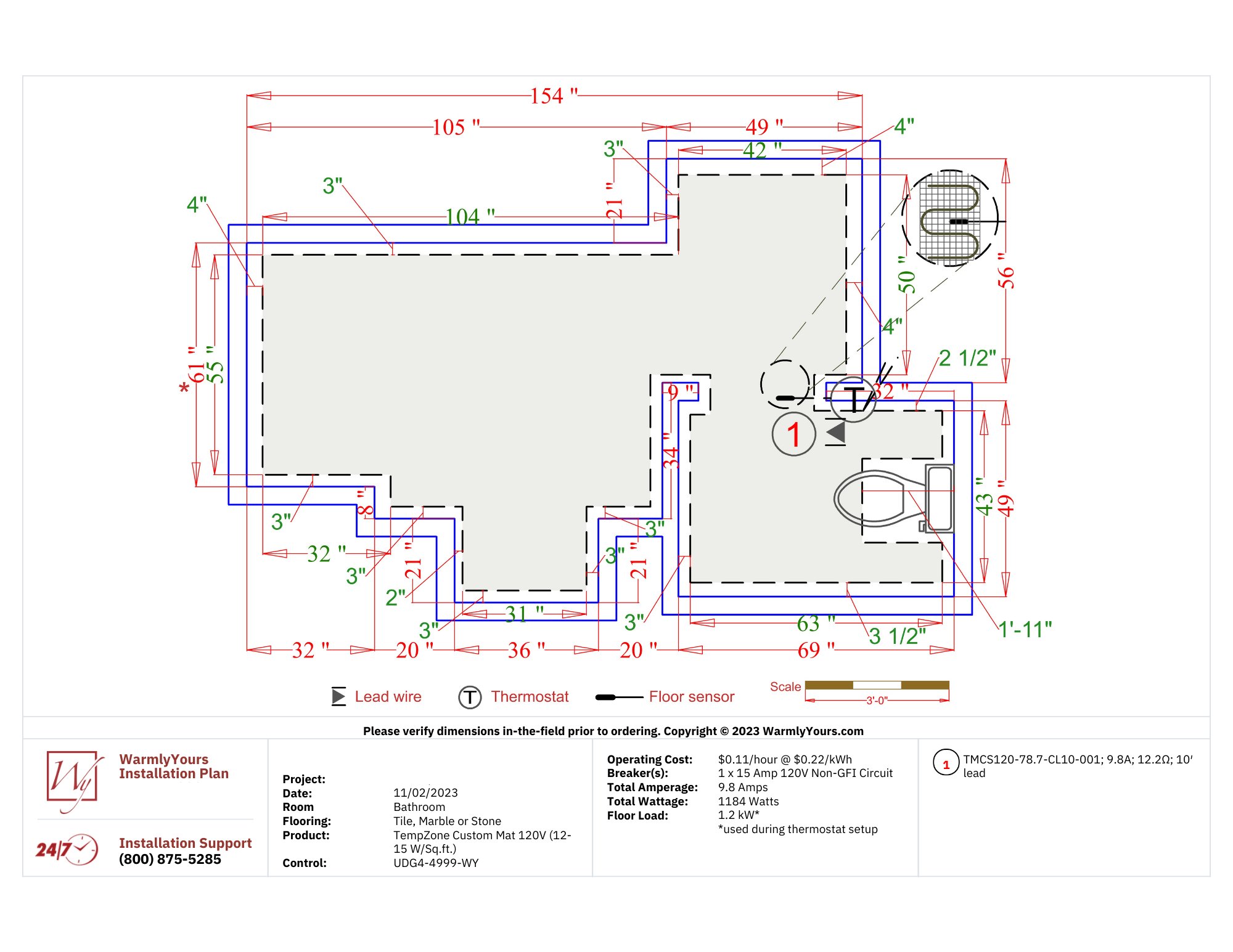 While WarmlyYours electric radiant floor heating systems are typically installed by your floor covering contractor, a licensed electrician is recommended for the final thermostat hook-up. With every quote, we provide an Installation Plan layout, together with an electrical plan that has all the info required for the electrician.