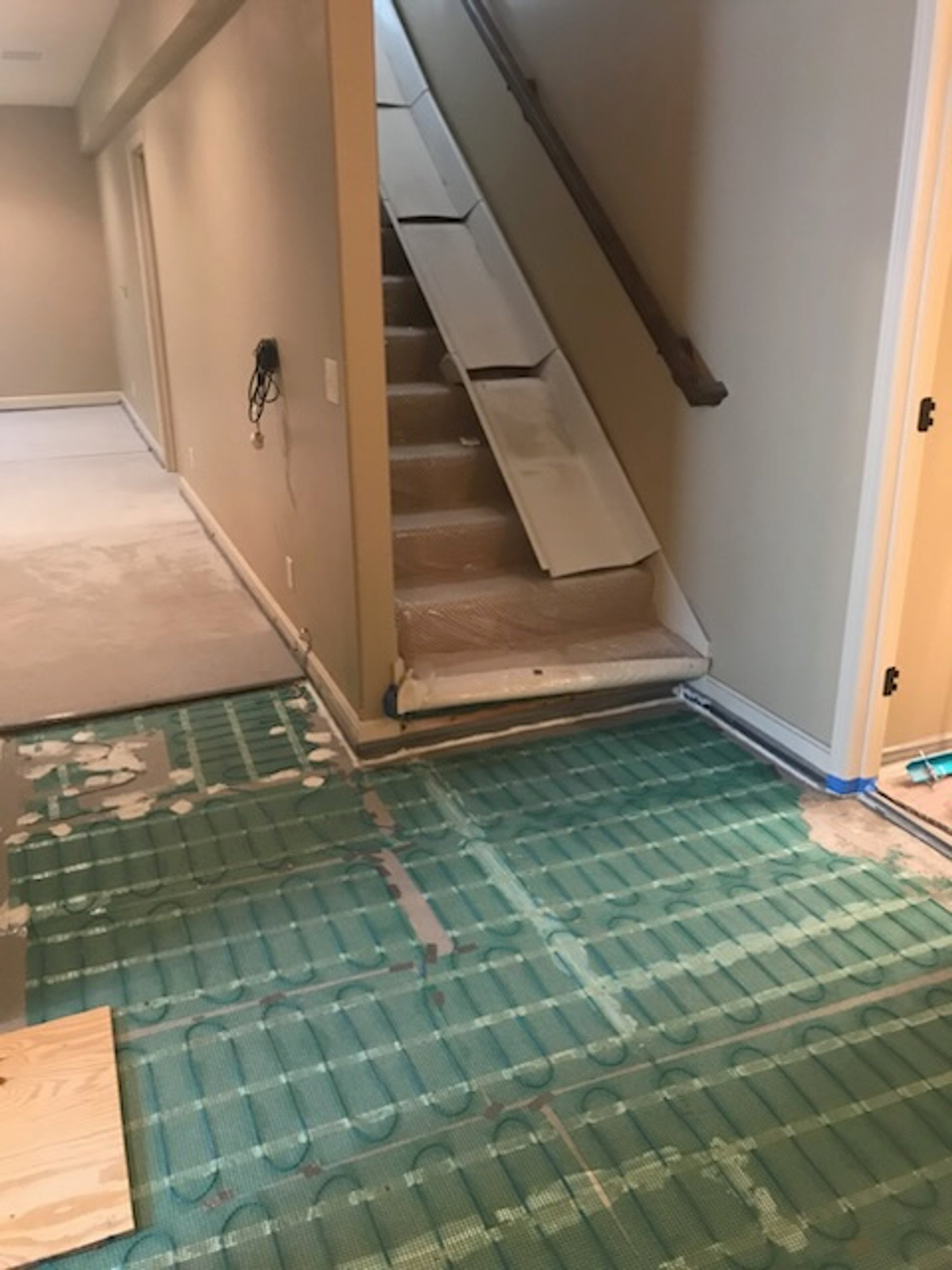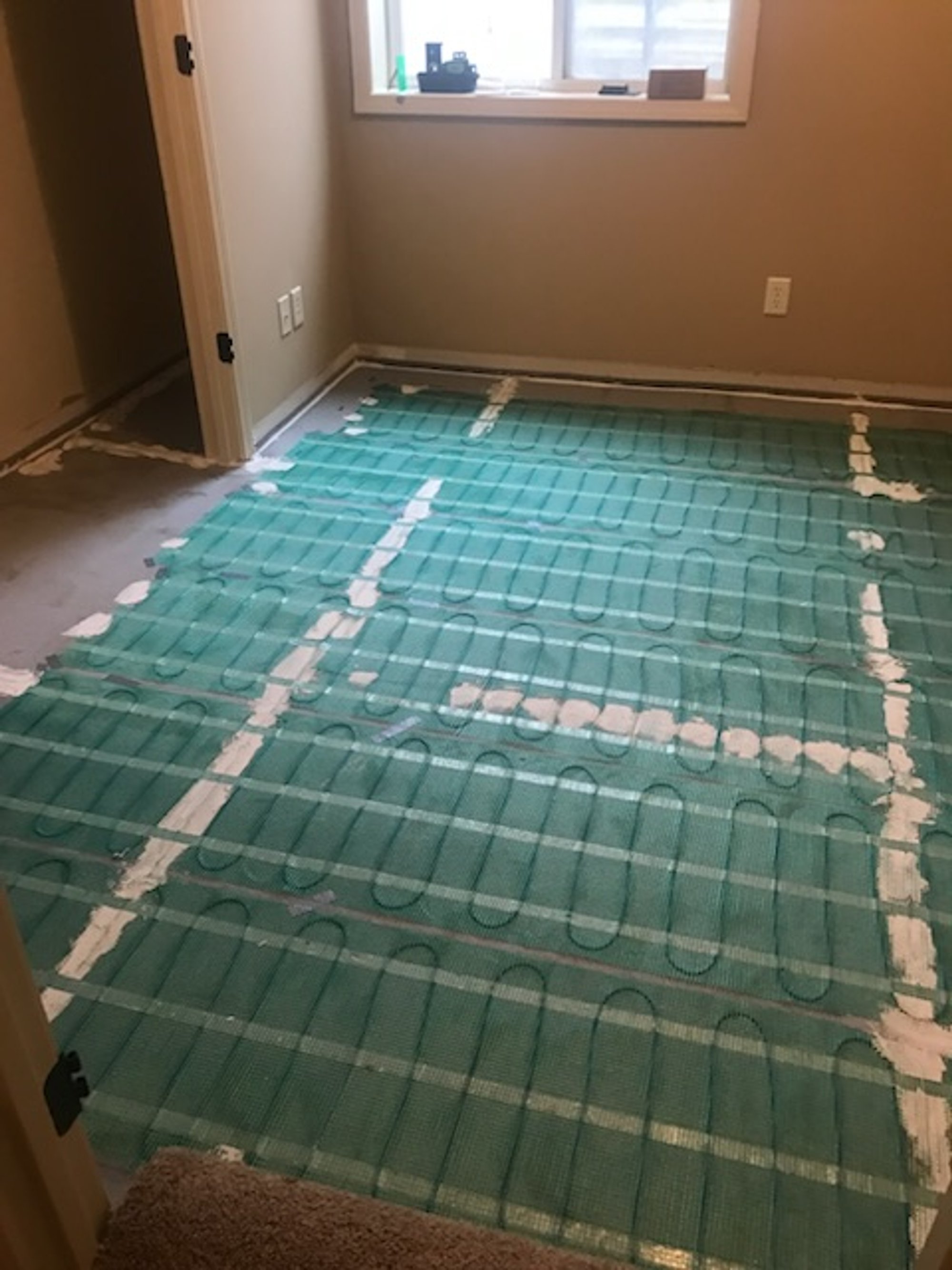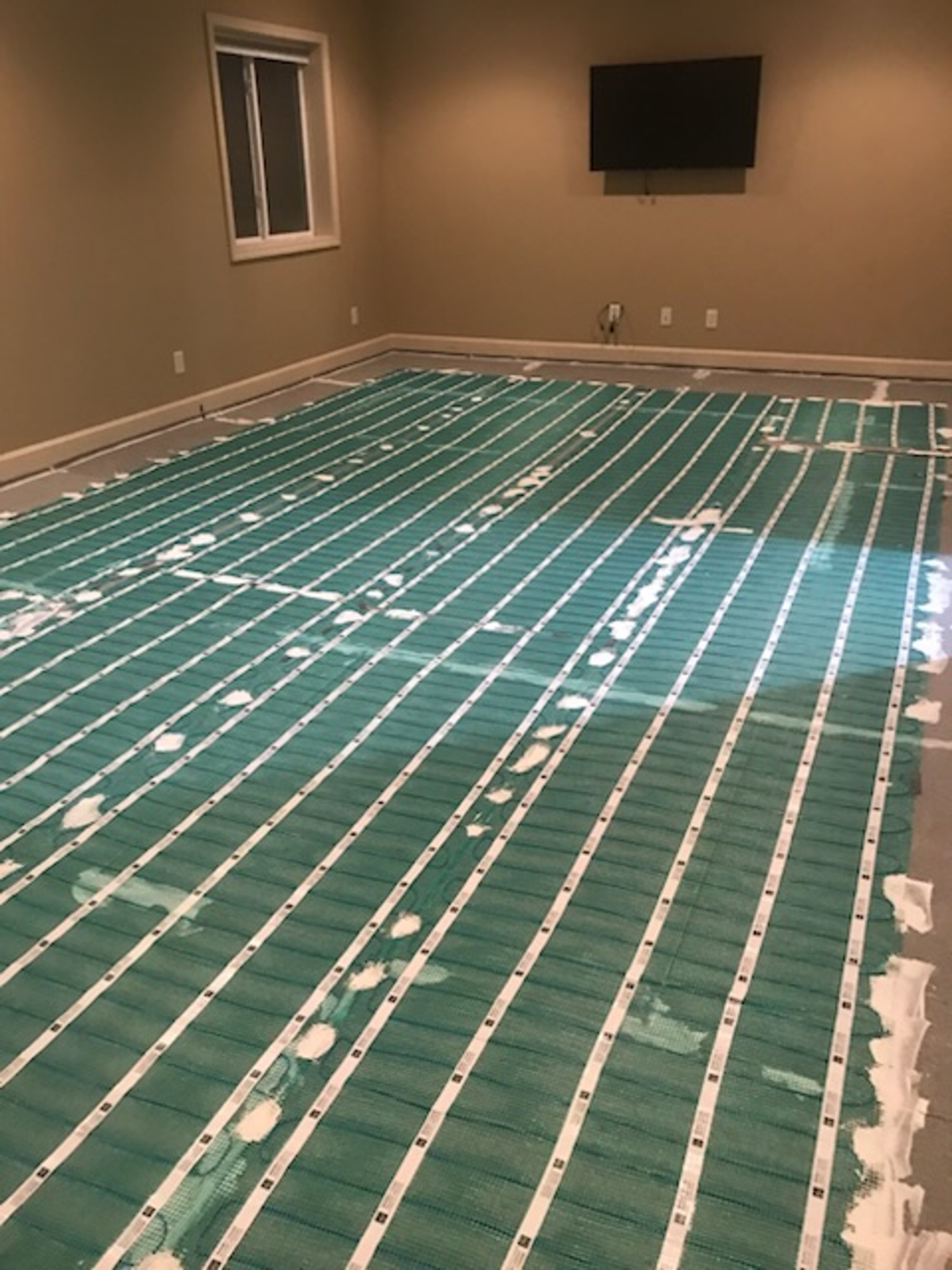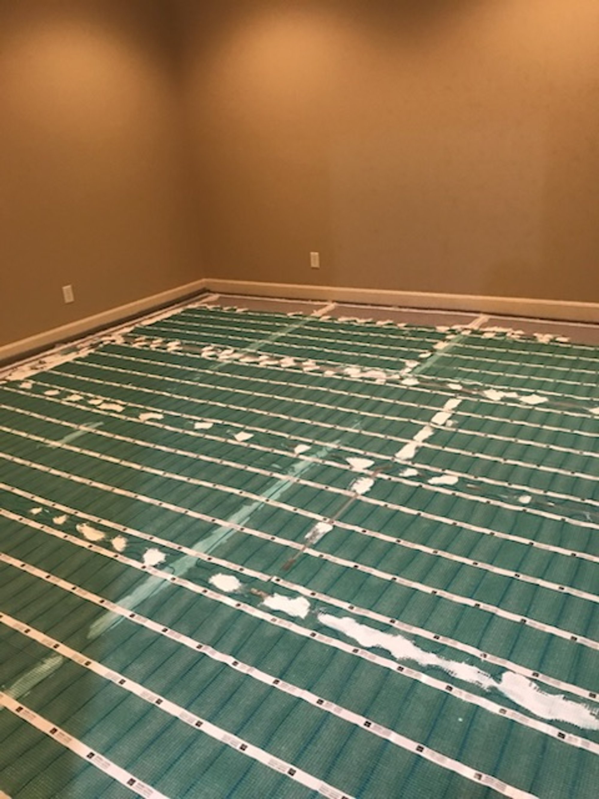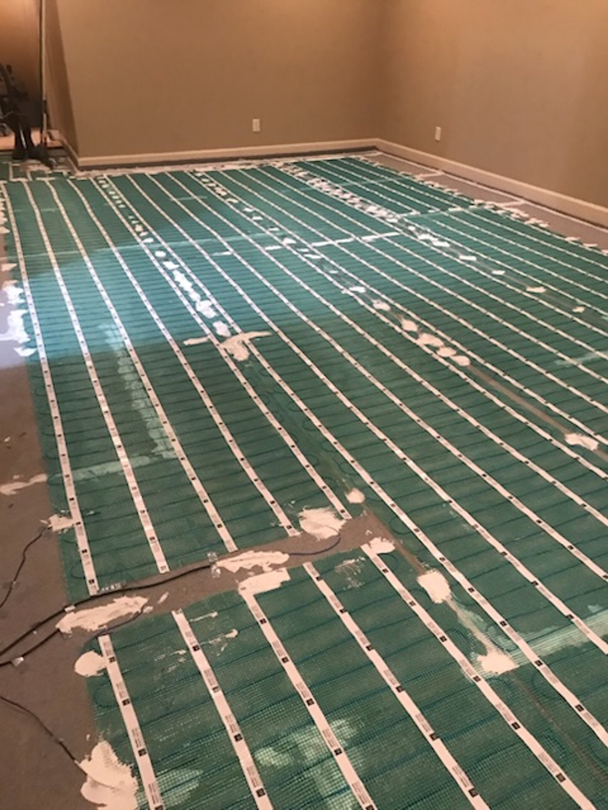 The solution was an 81 sq. ft. TempZone™ Flex Roll system. This in-floor heating system was installed directly over the existing concrete slab. What makes this project a rare and impressive example is the innovative floor finish applied on top. Instead of traditional tile, Lonnie applied a self-leveling compound directly over the heating elements to embed them, followed by a stylish acrylic troweled finish.