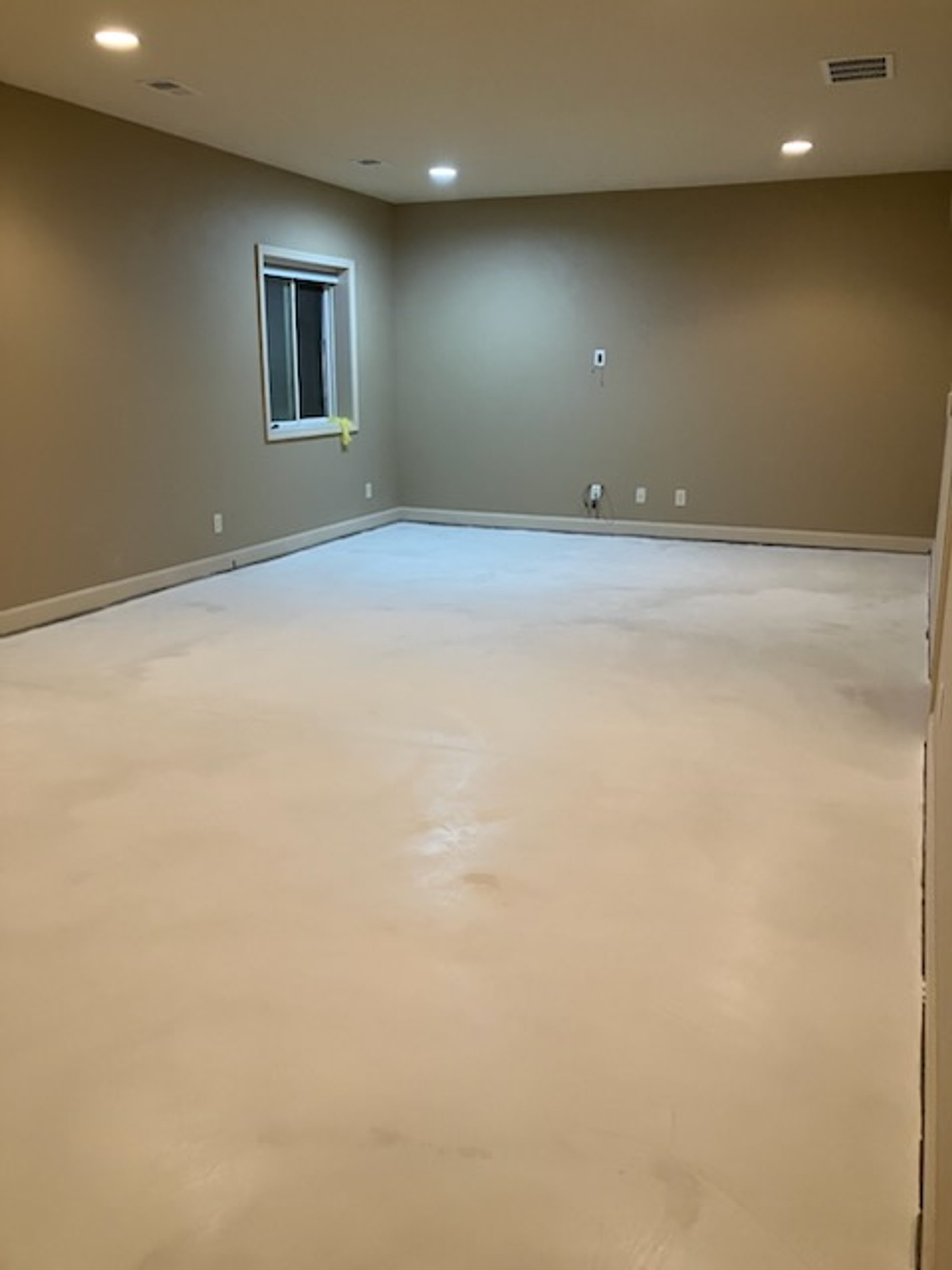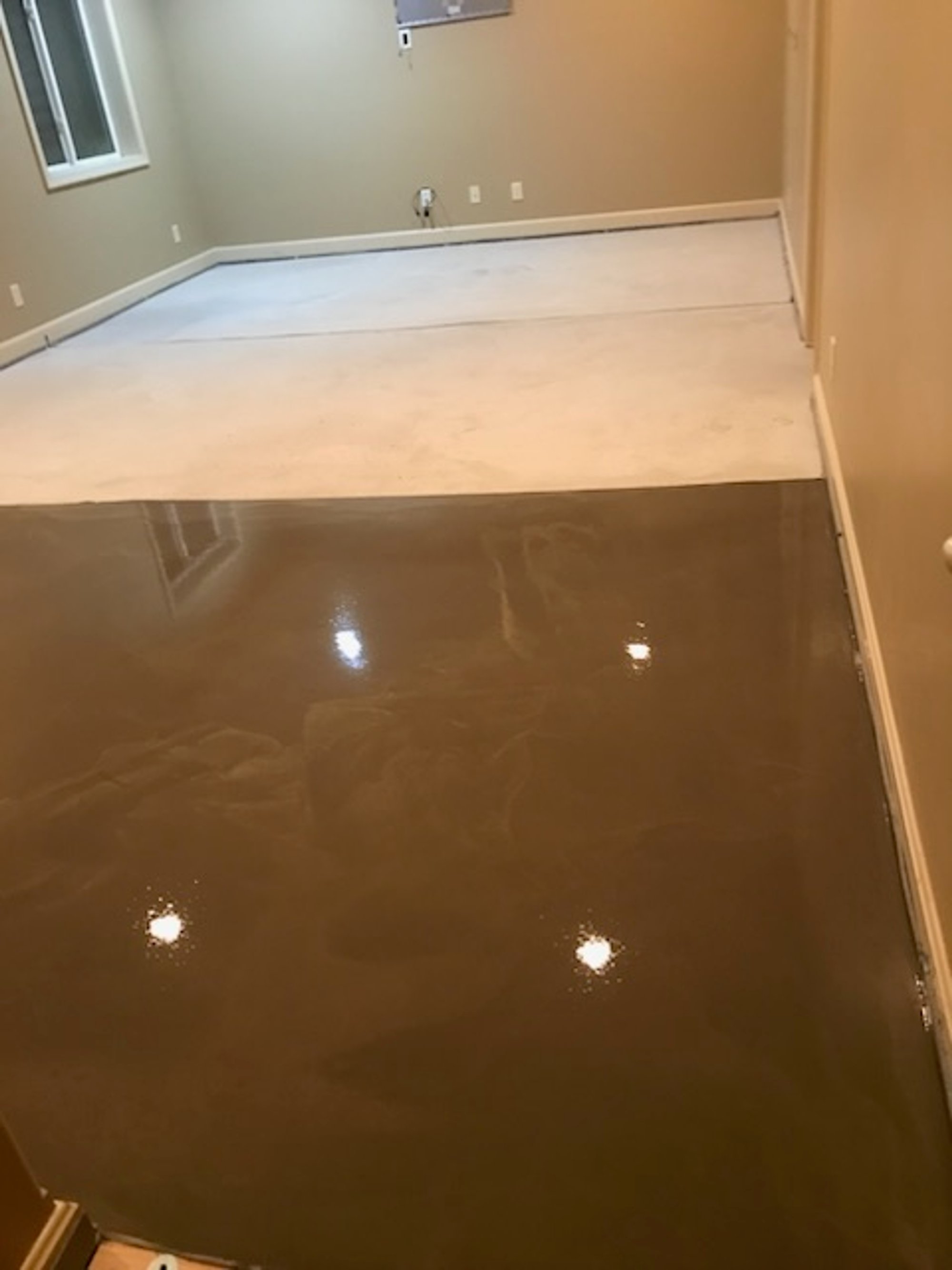 As Lonnie explained, "I installed a self-leveling topping and then an acrylic troweled finish on all the heated floors... Poured the leveler... one for the bedroom."