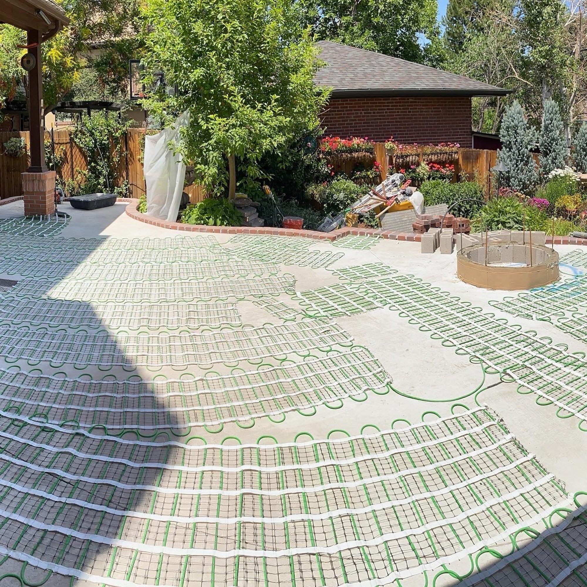 A beautiful paver patio and fire pit in Colorado Springs should be enjoyed year-round, but heavy snowfall often makes it a chore to maintain and completely unusable. The homeowner partnered with the hardscaping experts at Landscape FX Inc. to install a powerful 445 sq. ft. WarmlyYours snow melting system. This radiant heating solution provides automated, on-demand snow removal, ensuring the patio is always safe, accessible, and ready for use—transforming it into a true four-season outdoor oasis.