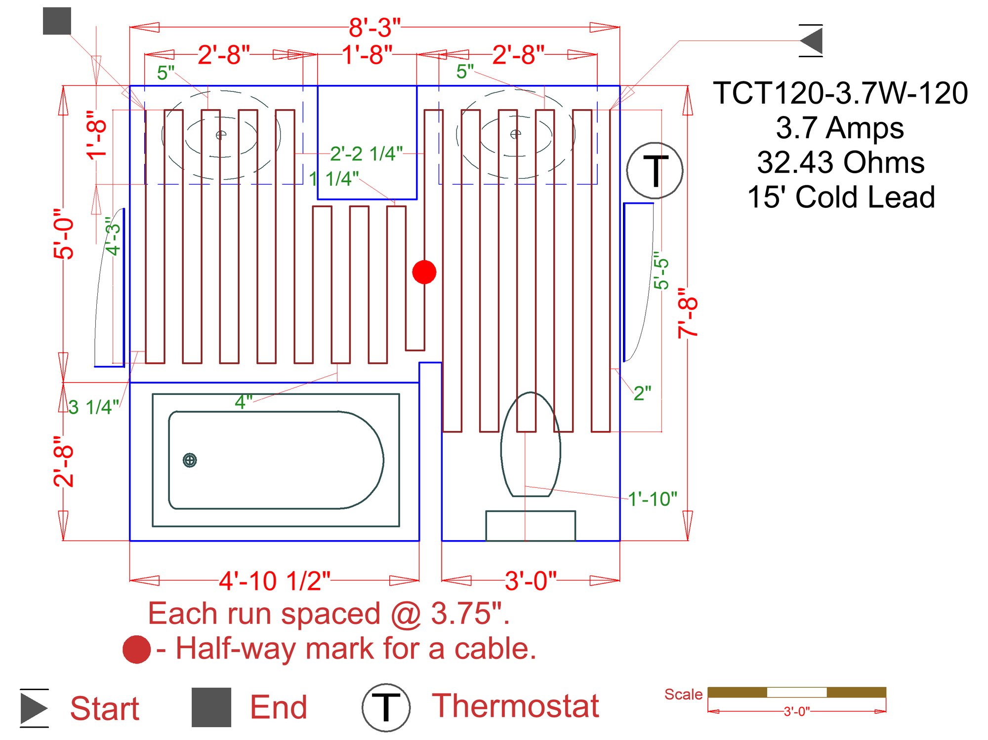 - TempZone™ Floor Heating Cable (120V): This free-form cable allows for maximum flexibility. It easily navigates around curves, angles, and fixtures (like toilets and vanities) to ensure every step is warm.