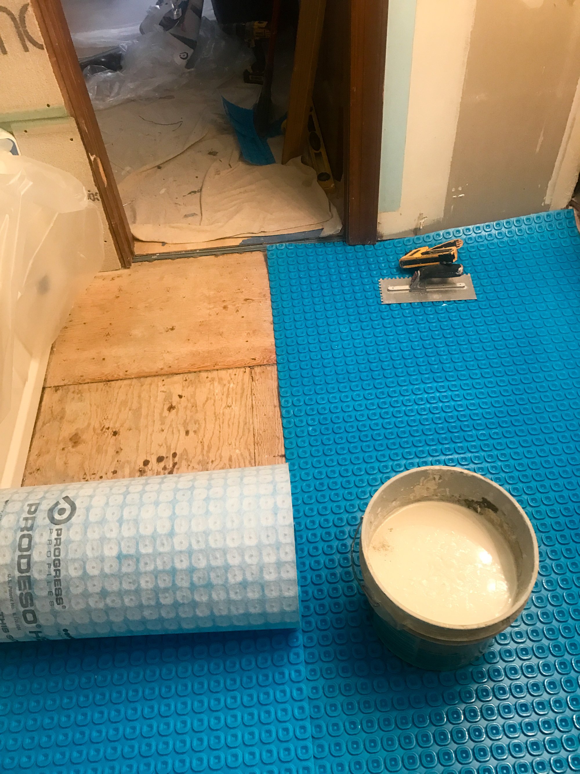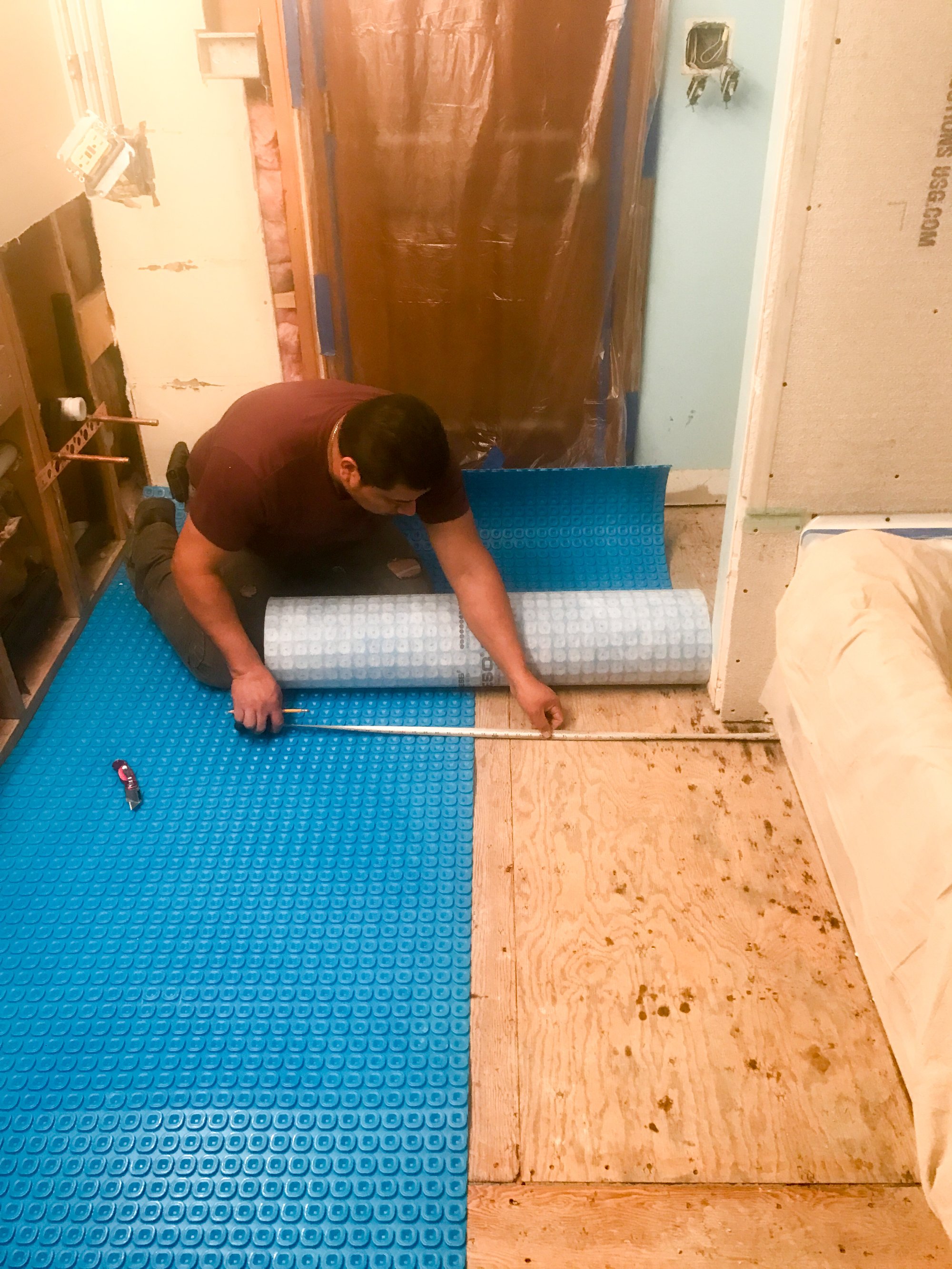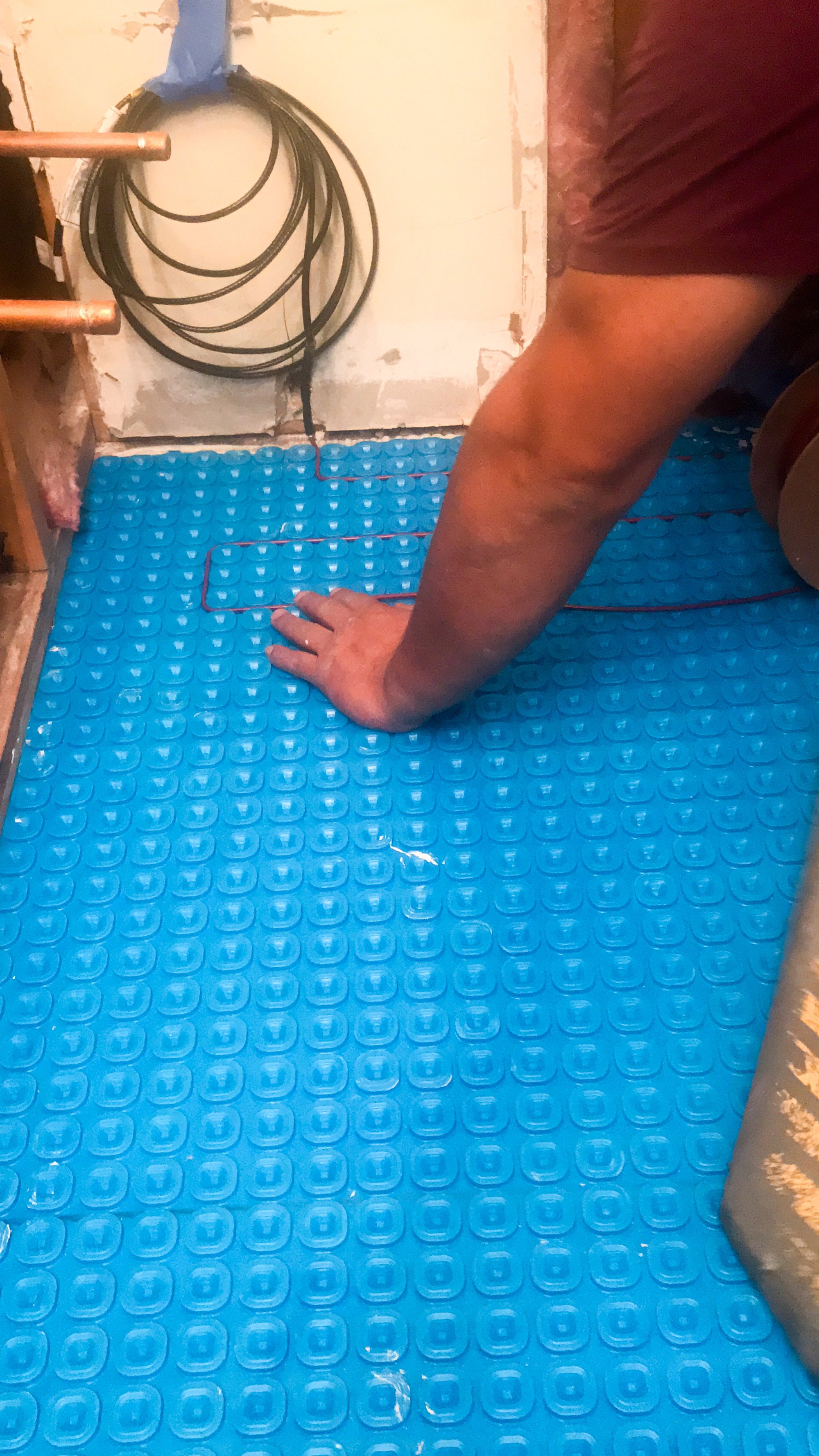 The Solution: A Hybrid of Heat and Protection The solution was a combination of the TempZone™ Electric Floor Heating Cable and the Prodeso Membrane. This duo is a powerhouse for bathroom remodels. The Prodeso Membrane serves as an uncoupling layer, which protects the grout and tile from cracking due to subfloor movement—a common issue in bathrooms. The flexible heating cable was then easily pressed into the membrane's channels at a 3.75-inch spacing. This setup allowed for full coverage of the 50 sq. ft. room (heating the key traffic areas) without the need for waiting on thin-set to cure before tiling.