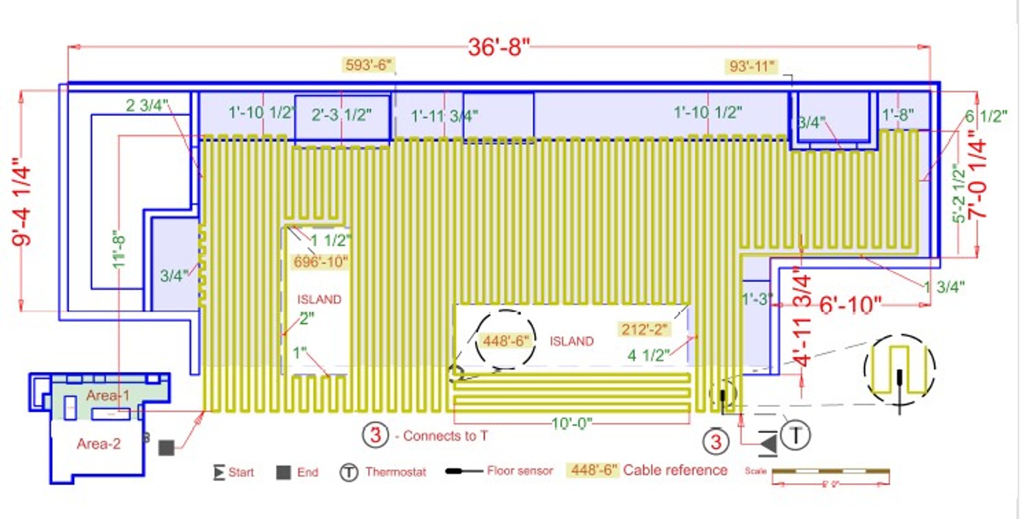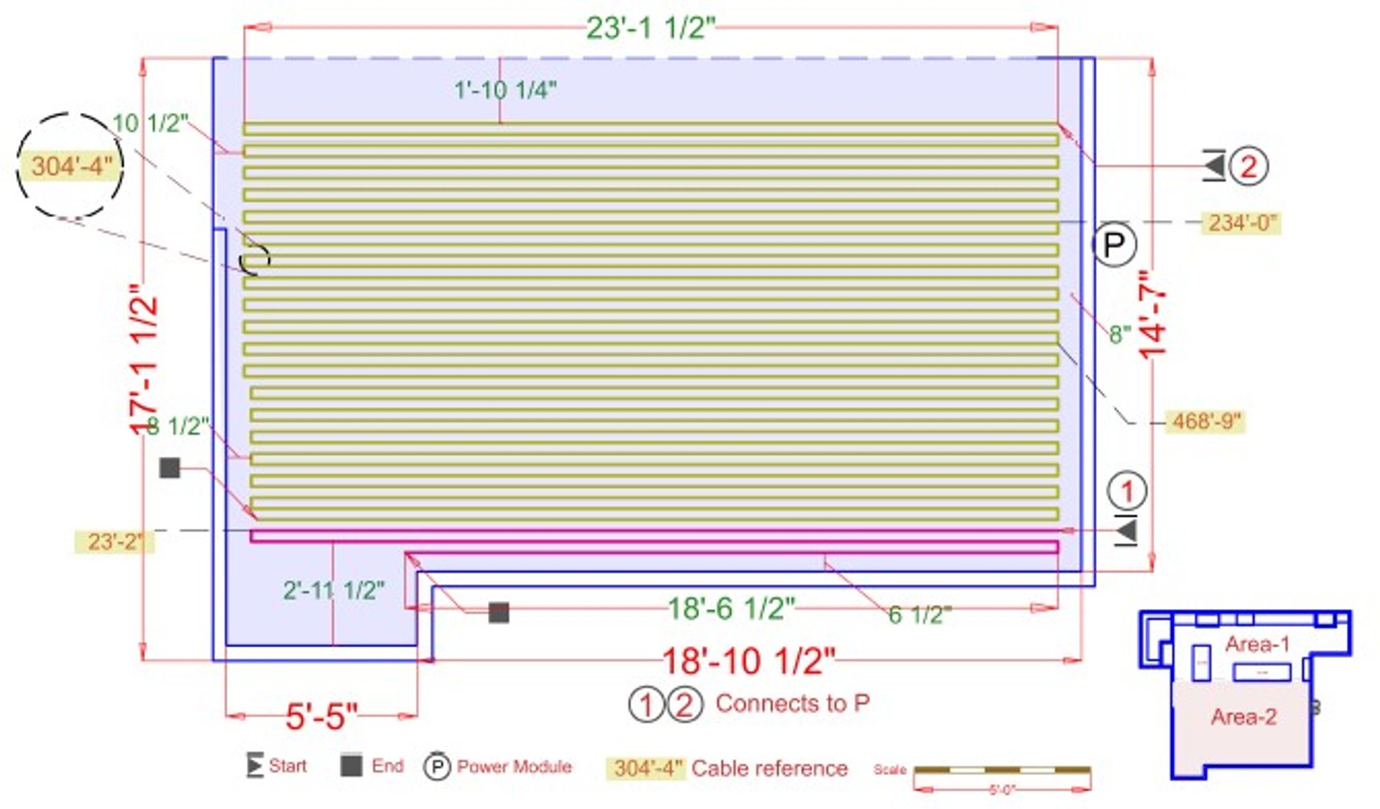 - TempZone™ Ruler Cable: Designed for flexibility, this cable allows for custom coverage in large or complex layouts, ensuring no corner of the 25x25 kitchen is left cold.