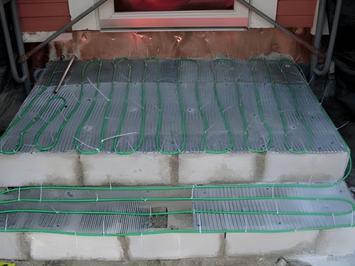 To solve this, professional installer Robert Robillard of A Concord Carpenter integrated a WarmlyYours Snow Melt Cable system directly into a new concrete pour. You can view the technical nuances of this build in his detailed guide on installing snow melting cables. By securing the cables at a precise 3.5-inch spacing, the team ensured a high-output 43 Watts per square foot, guaranteeing that the thermal energy is distributed evenly across every square inch of the landing and steps. This prevents the "striping" effect where snow only melts directly above the wire, ensuring the entire path remains bone-dry even in sub-zero temperatures.