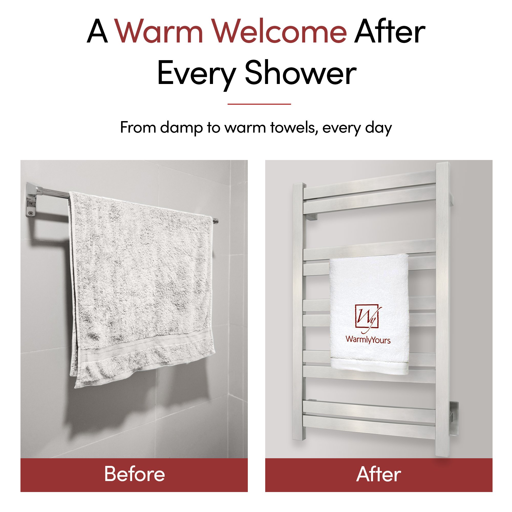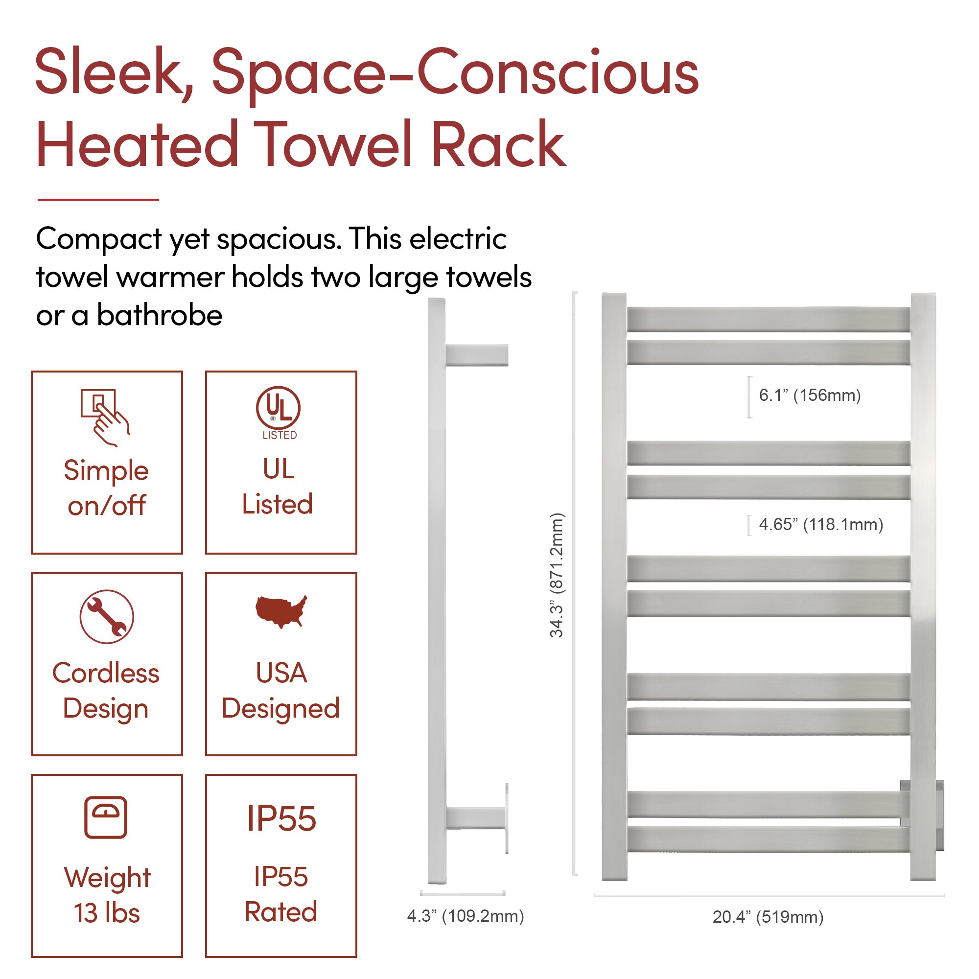 • Generous 10-Bar Design: The Grande 10 towel warmer uses 10 polished stainless steel bars to evenly distribute heat, warming up to 2 large towels or bathrobes