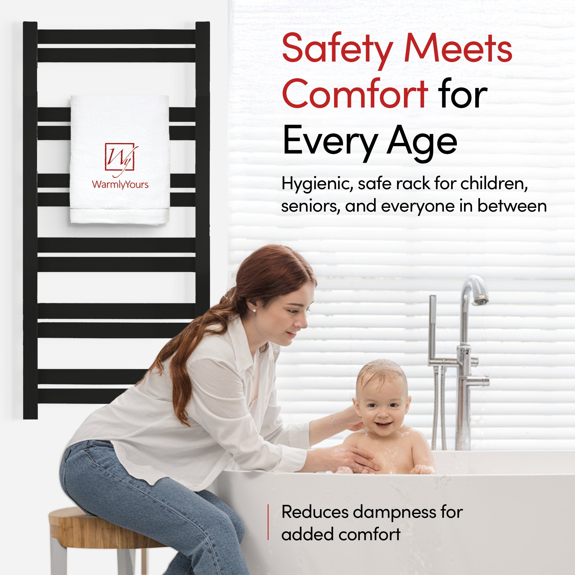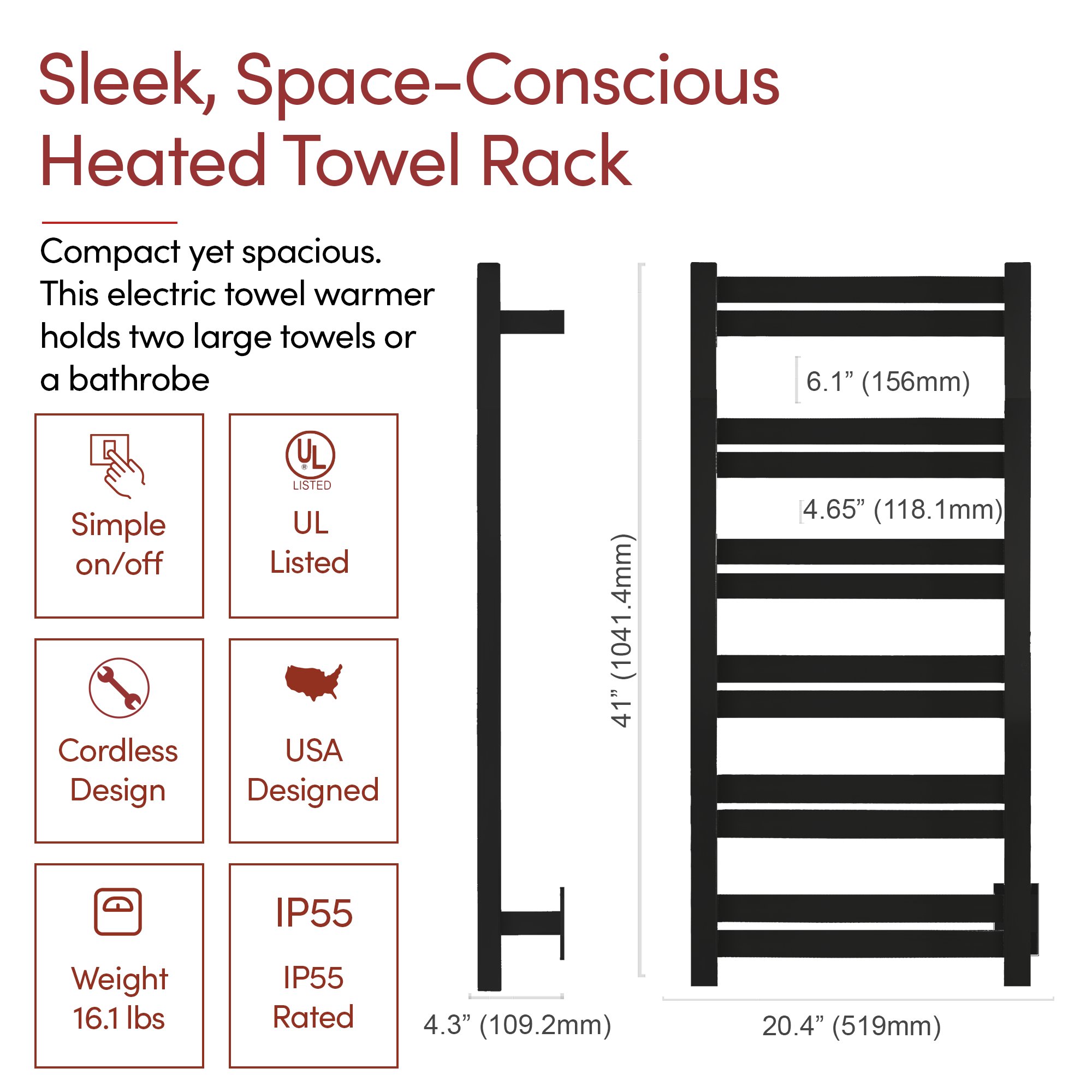Generous 12-Bar Design: The Grande 12 towel warmer uses 12 matte black stainless steel bars to evenly distribute heat, warming up to 2 large towels or bathrobes